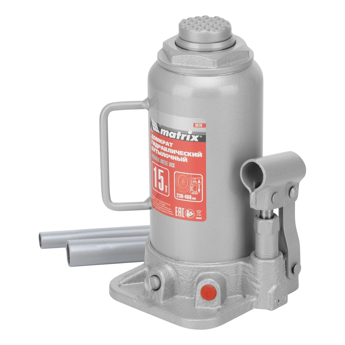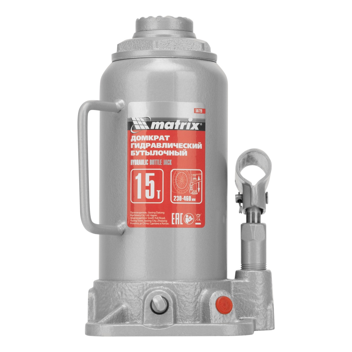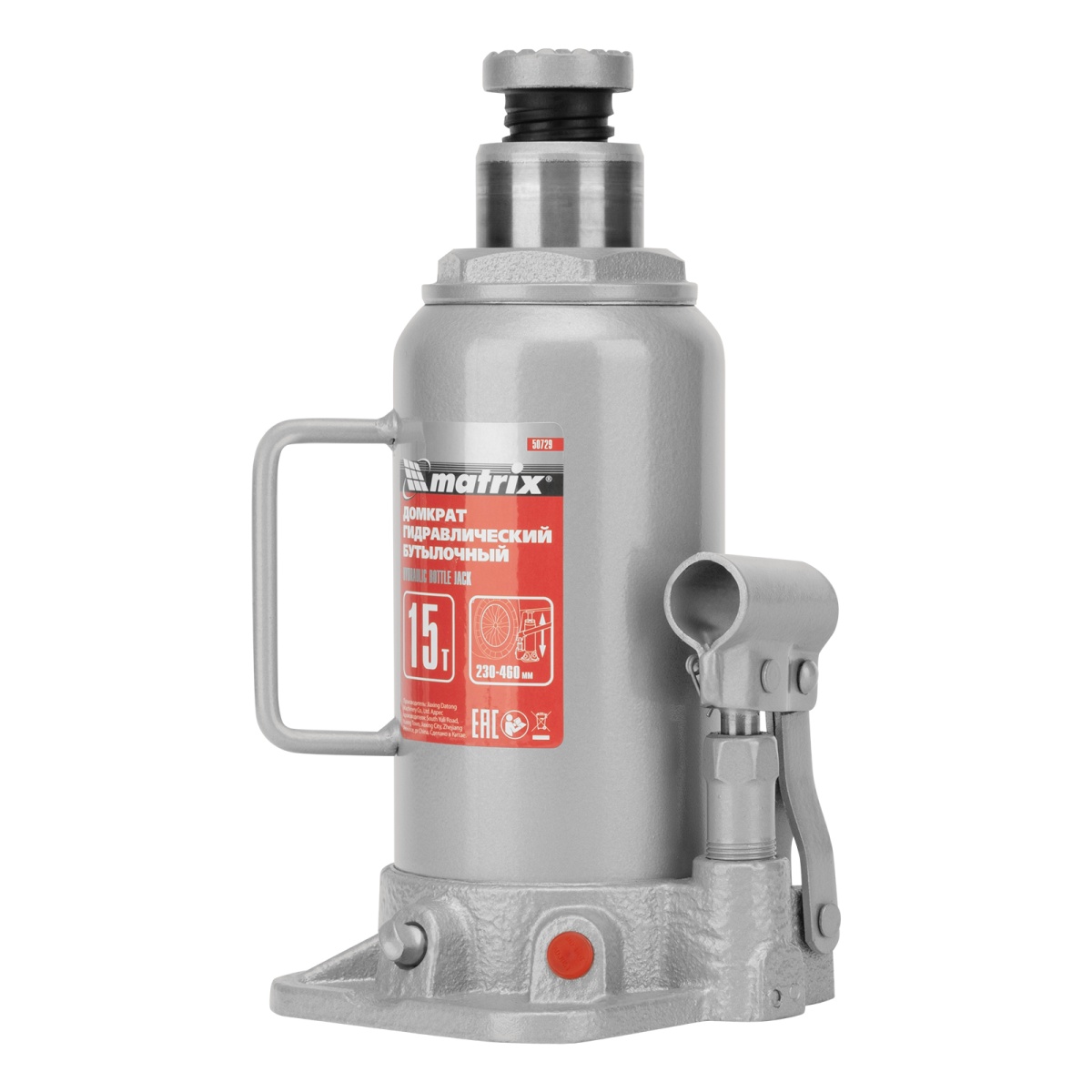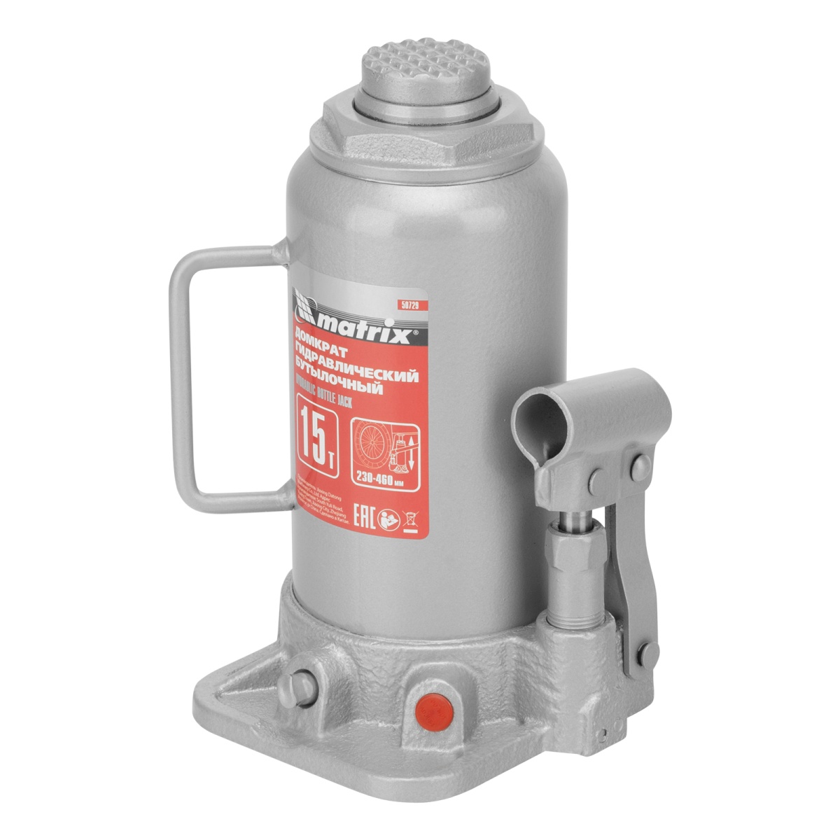 Гидравлический бутылочный домкрат Matrix 50729 подходит для автомобилей с высоким клиренсом. Домкрат будет полезен автолюбителям в гараже и дороге, а также сотрудникам СТО.
