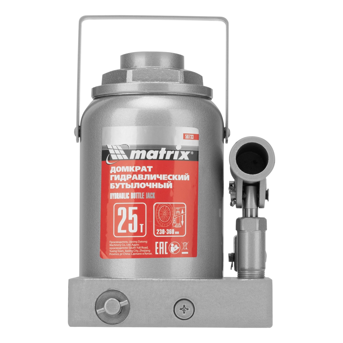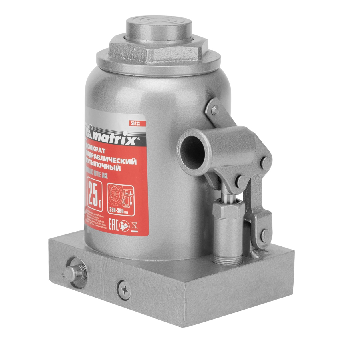 - Гидравлический бутылочный домкрат Matrix 50733 используется для поднятия и фиксации грузов весом до 25 т на высоту 230-360 мм.
