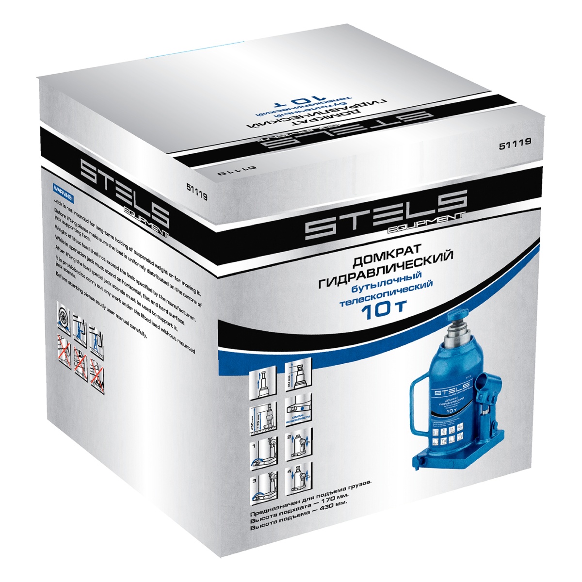 Домкрат гидравлический бутылочный телескопический Stels 51119 используется для поднятия грузов весом до 10 т с небольшим рабочим усилием.