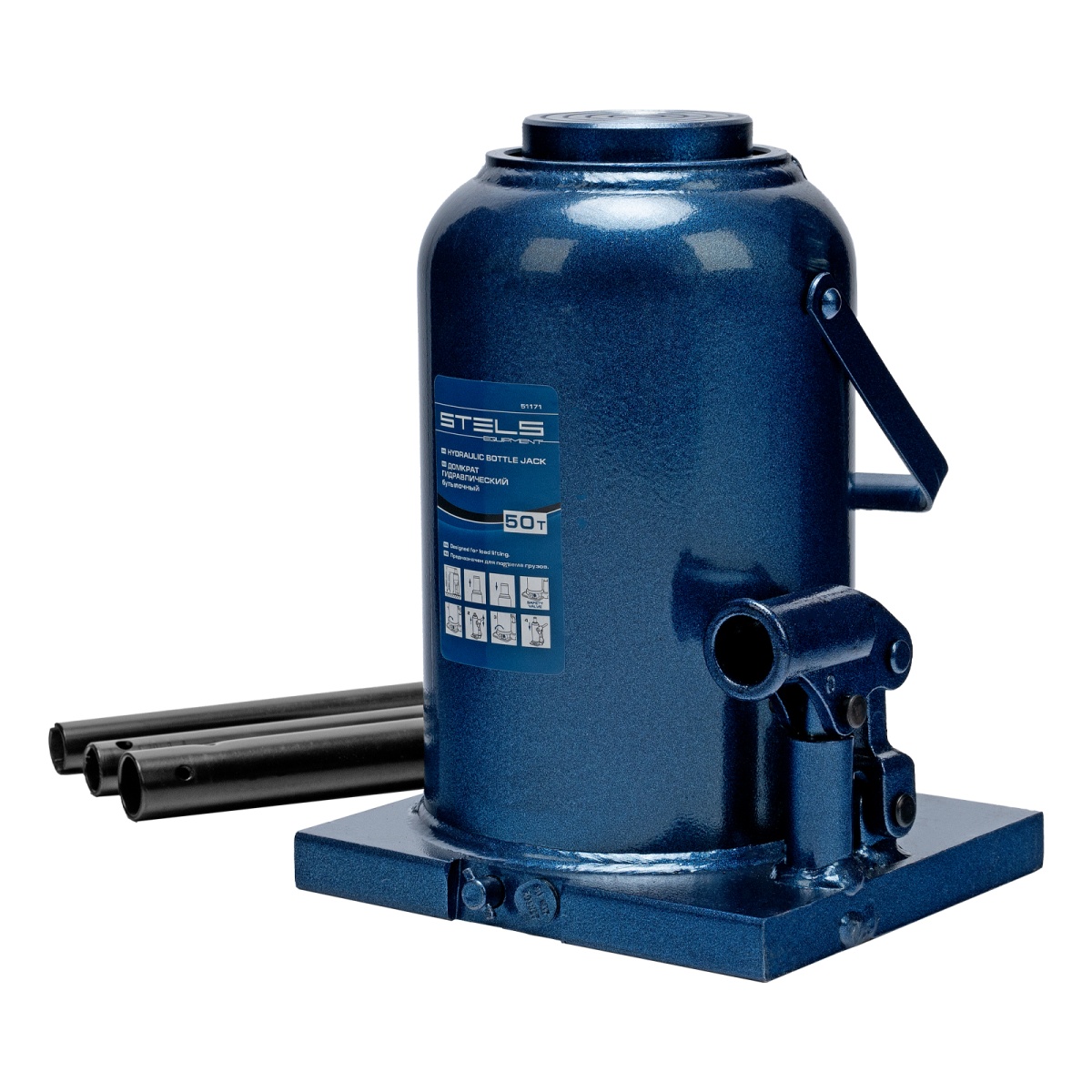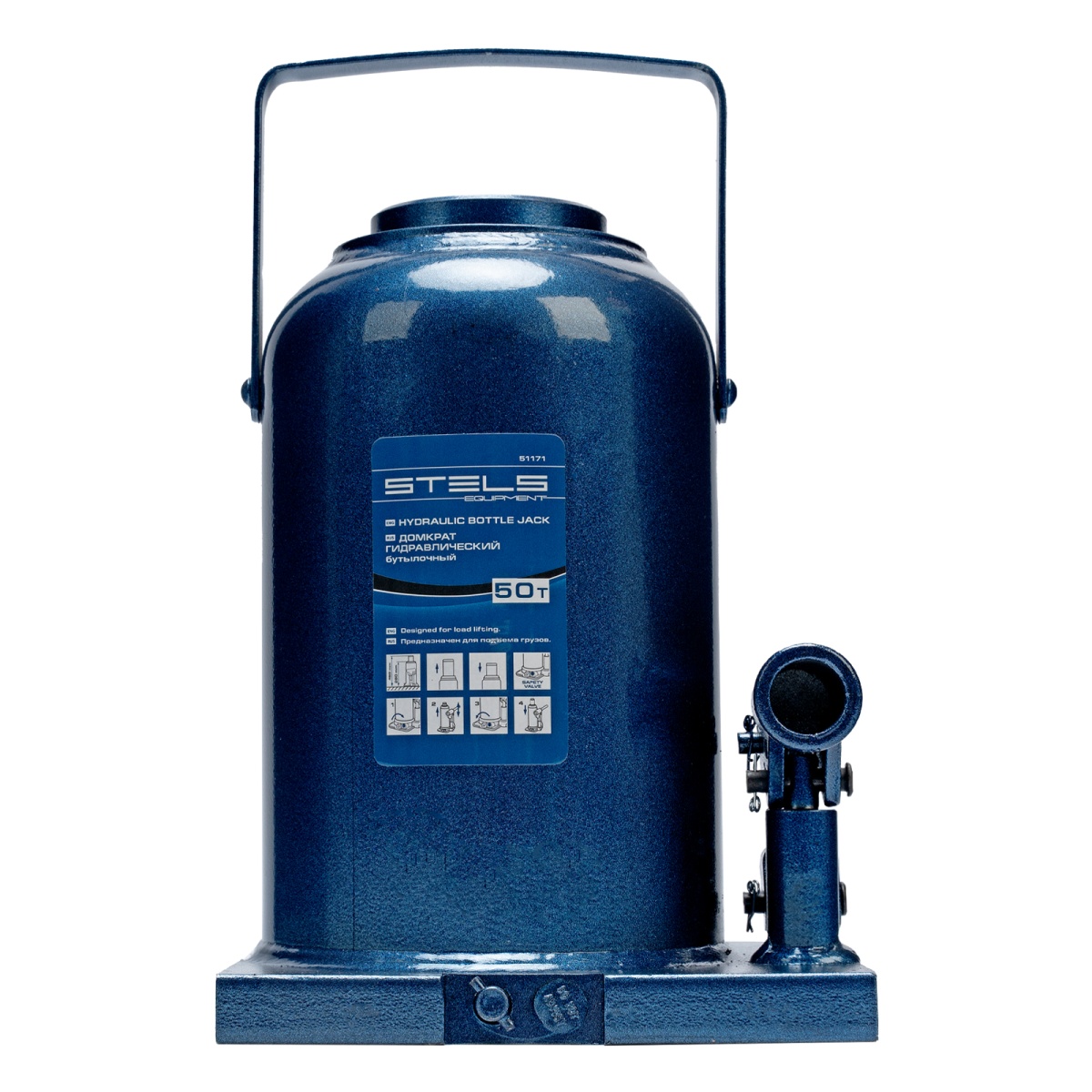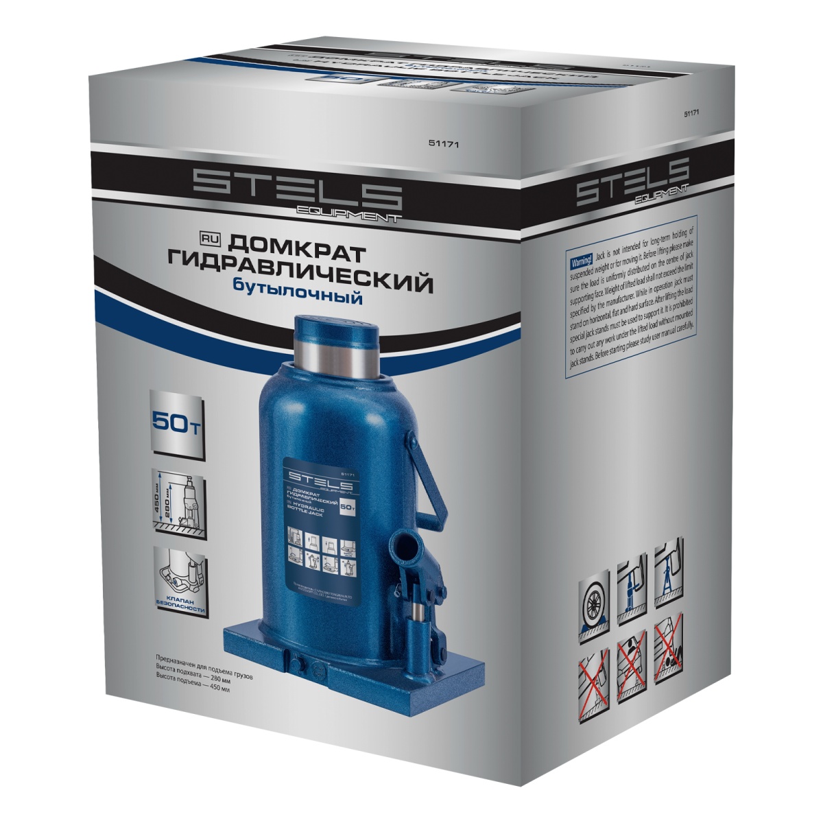 Гидравлический бутылочный домкрат Stels 51171 применяется для быстрого поднятия грузов весом до 50 т на высоту до 450 мм.