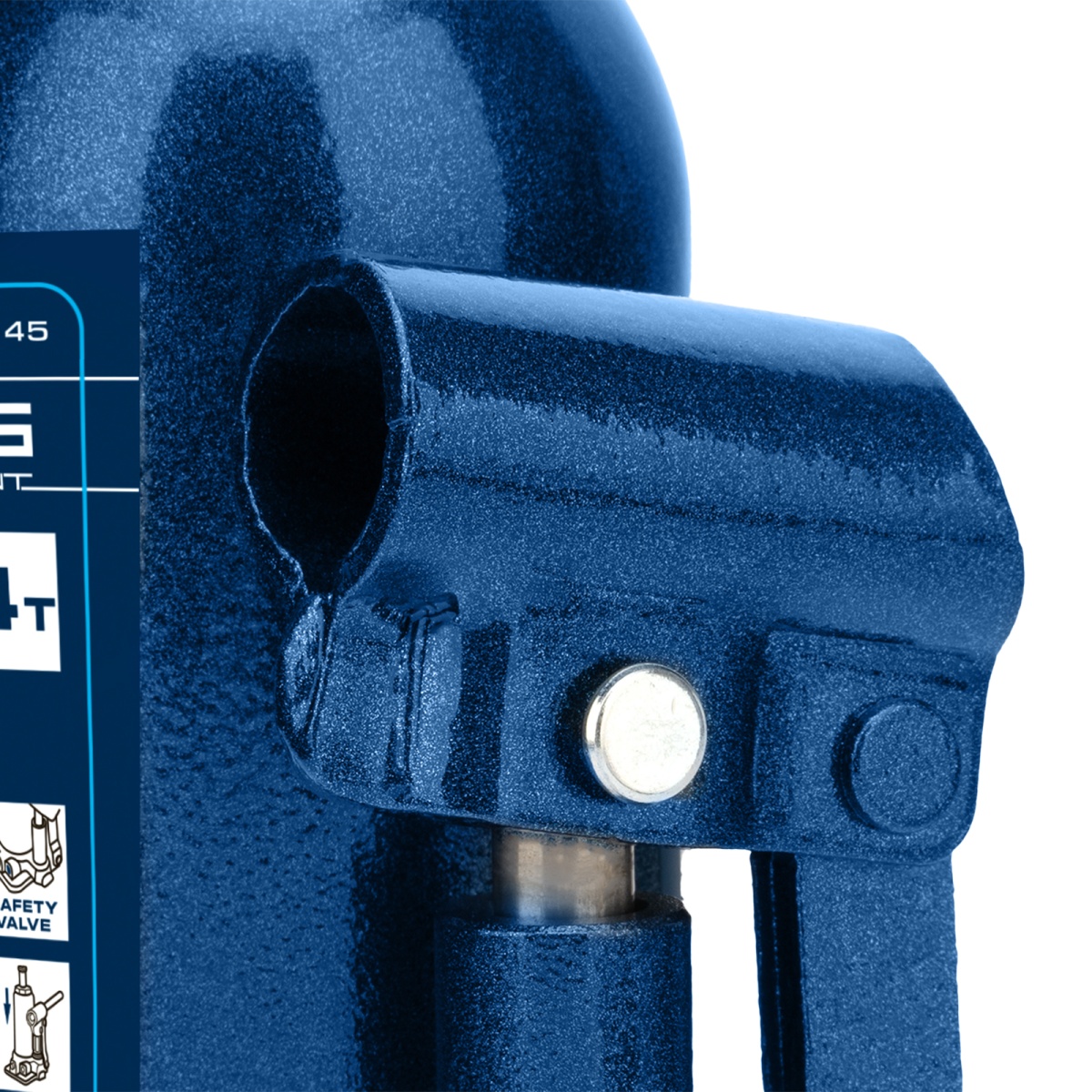- Защита от поломки — клапан безопасности не позволяет поднимать грузы массой свыше 4000 кг.Надежная конструкция — основание и корпус выполнены из стали и сварены между собой.Малый вес 3.64 кг — домкрат легко перемещать и перевозить в багажнике машины.