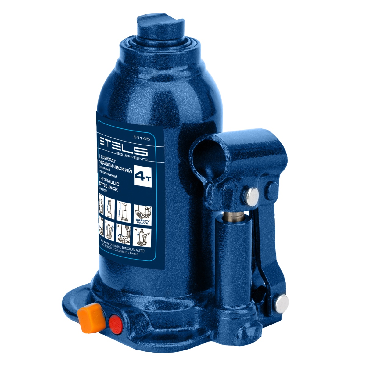 Гидравлический бутылочный телескопический домкрат Stels 51145 не требует больших усилий и оптимален для автомобилей с большим клиренсом. Домкрат можно использовать в гараже для самостоятельного ремонта машины или в автосервисе для решения профессиональных задач.