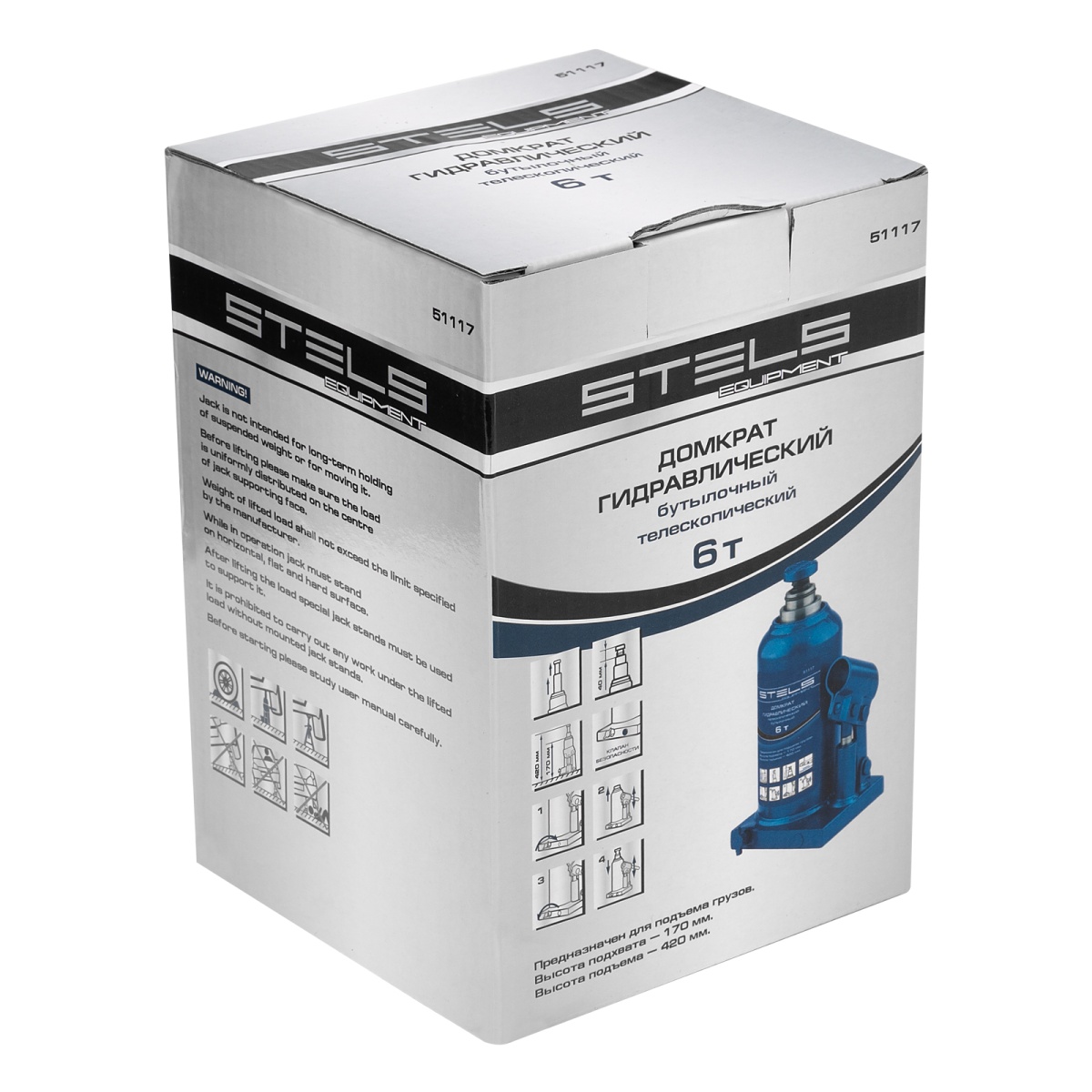 Гидравлический бутылочный телескопический домкрат Stels 51117 не требует больших усилий и оптимален для автомобилей с большим клиренсом. Домкрат можно использовать в гараже для самостоятельного ремонта машины или в автосервисе для решения профессиональных задач.