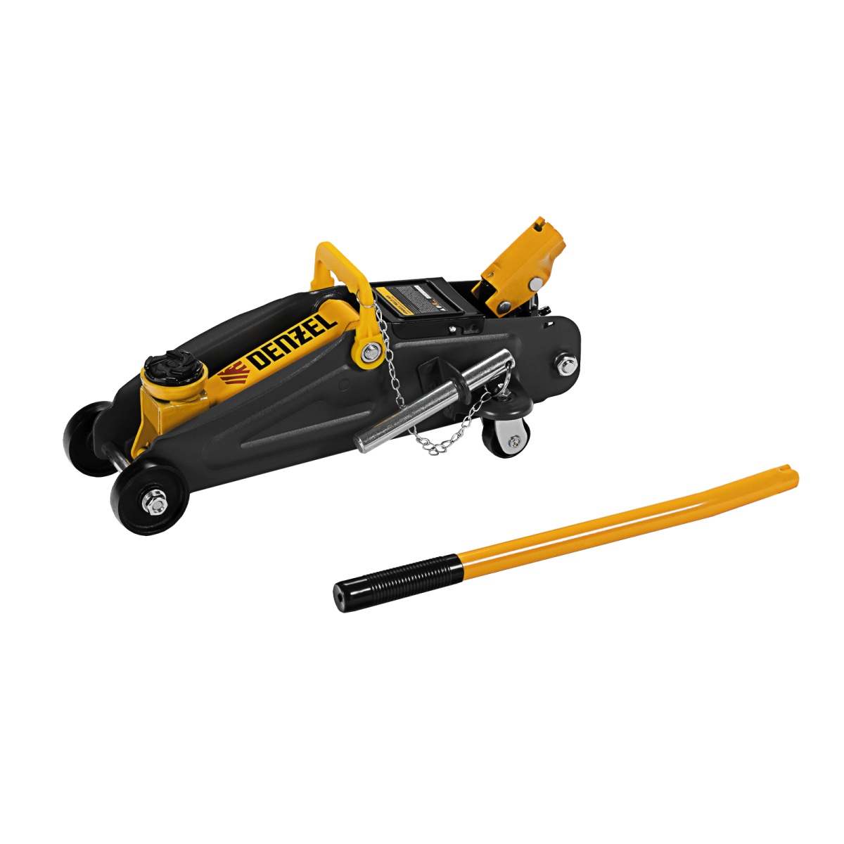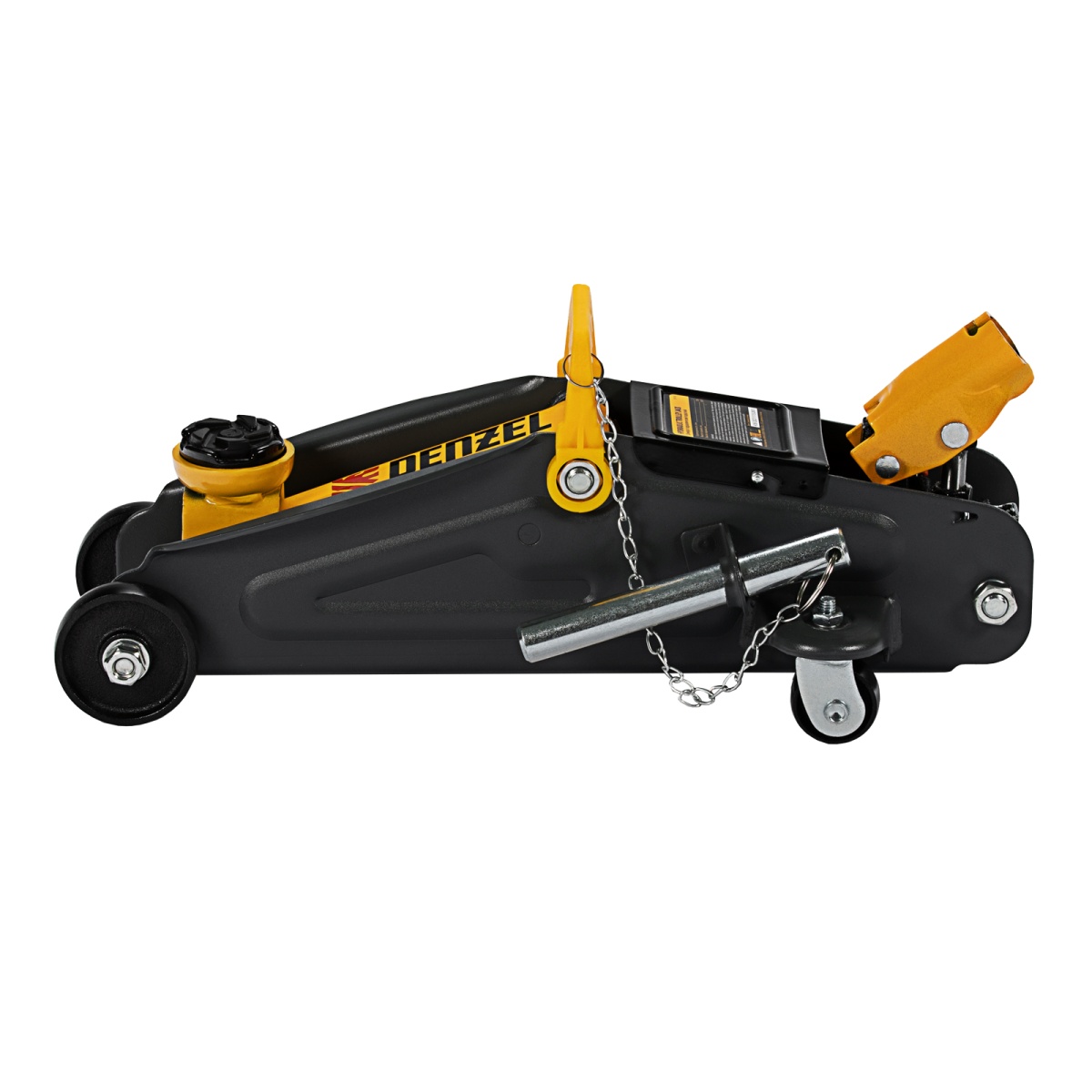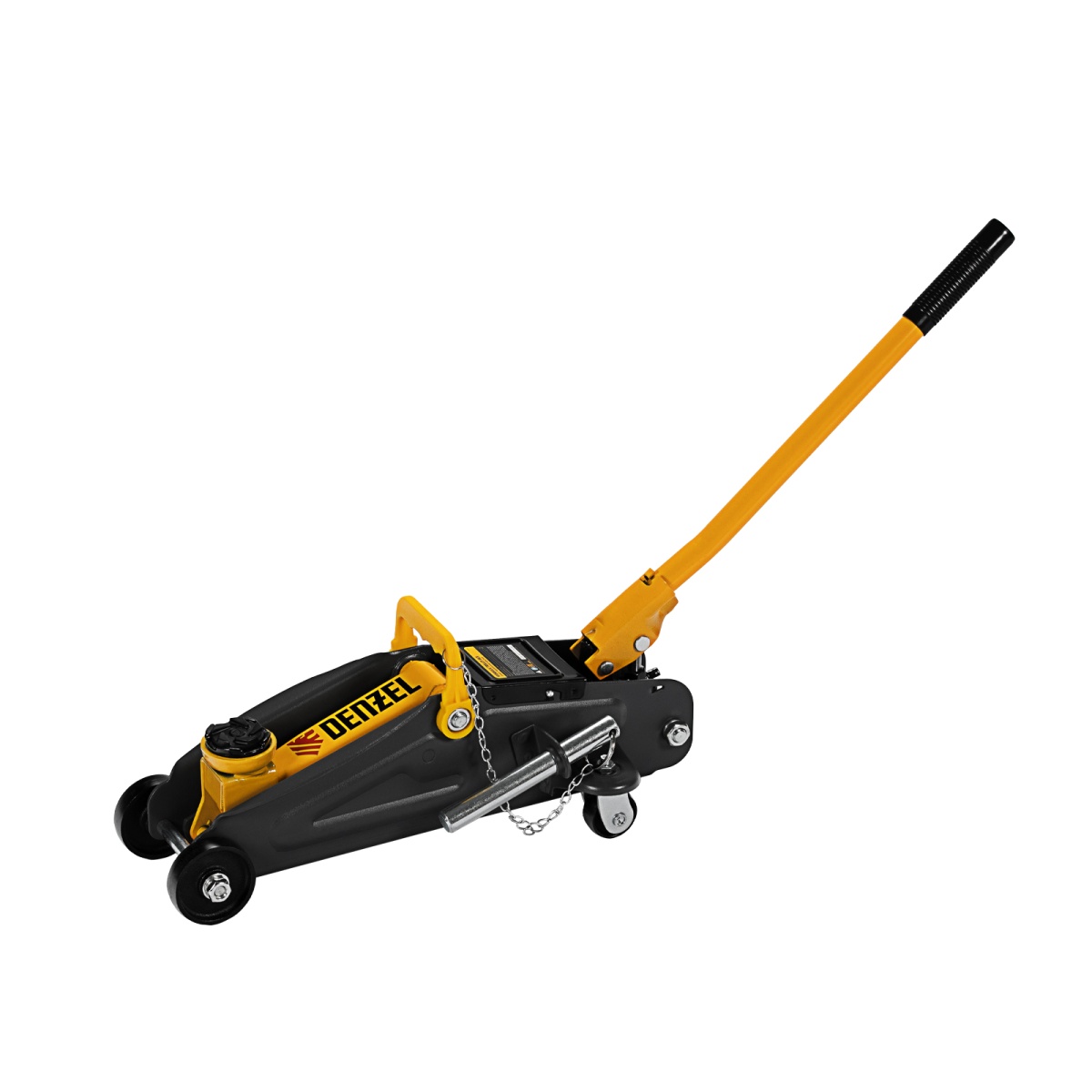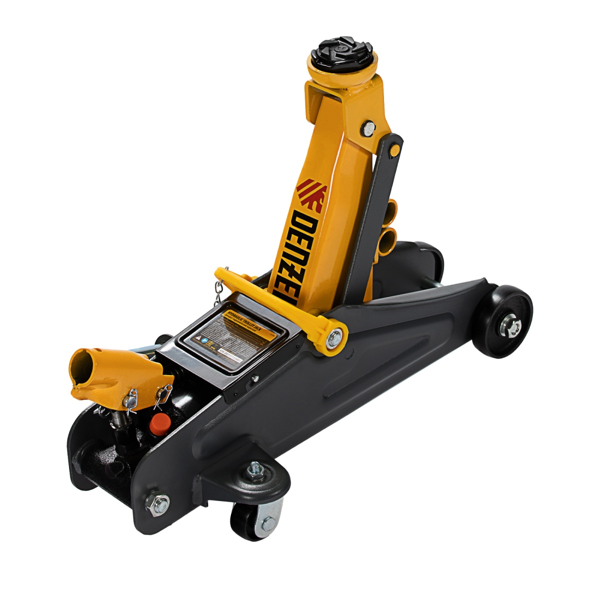 Гидравлический подкатной домкрат с фиксатором Denzel 51153, с высотой подхвата 130 мм, предназначен для плавного подъема грузов массой до 2 т на высоту до 330 мм.