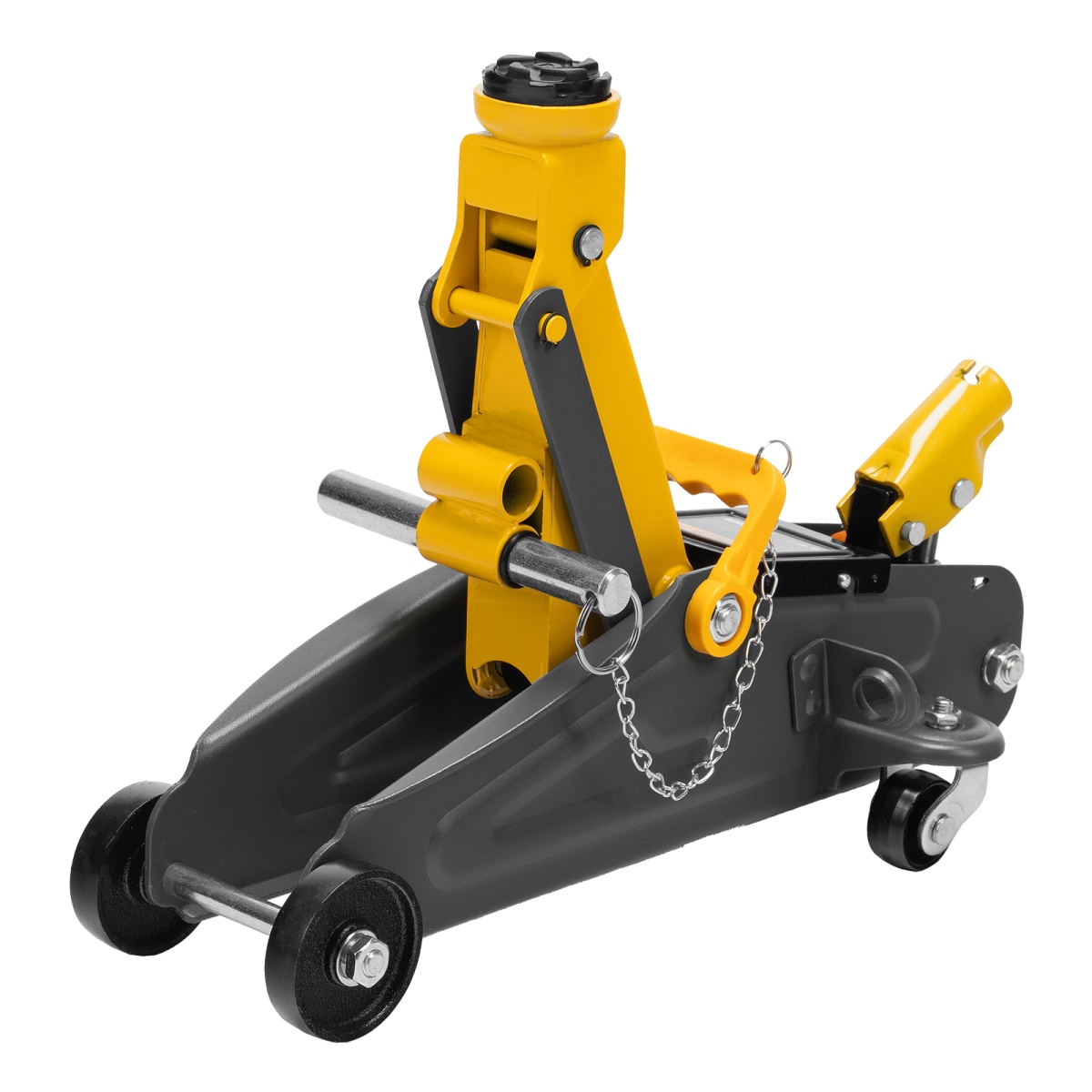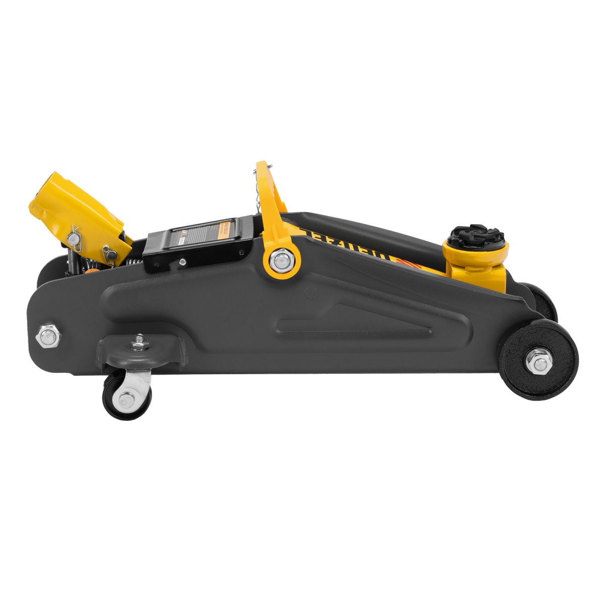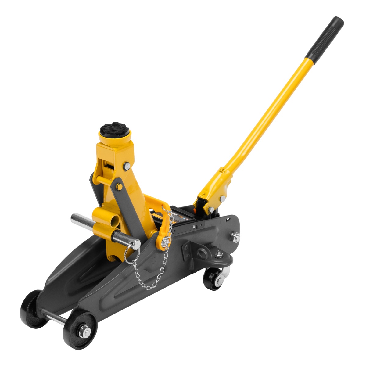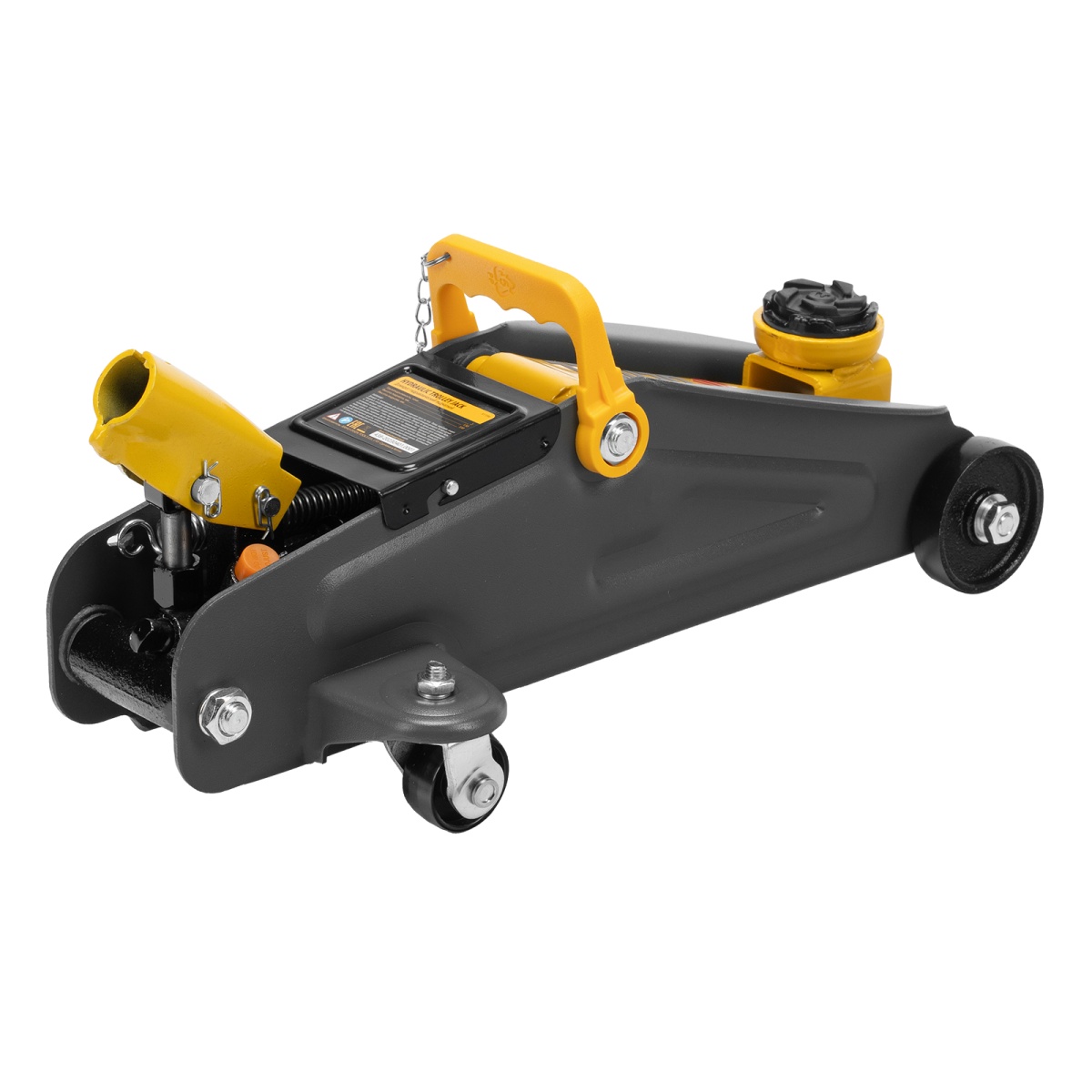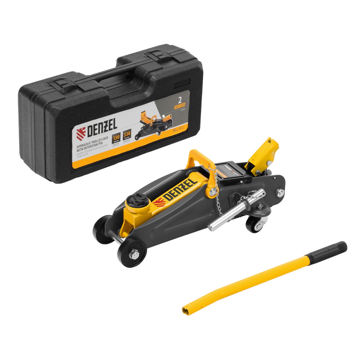 Гидравлический подкатной домкрат с фиксатором Denzel 51154, с высотой подхвата 130 мм, предназначен для плавного подъема грузов массой до 2 т на высоту до 330 мм.