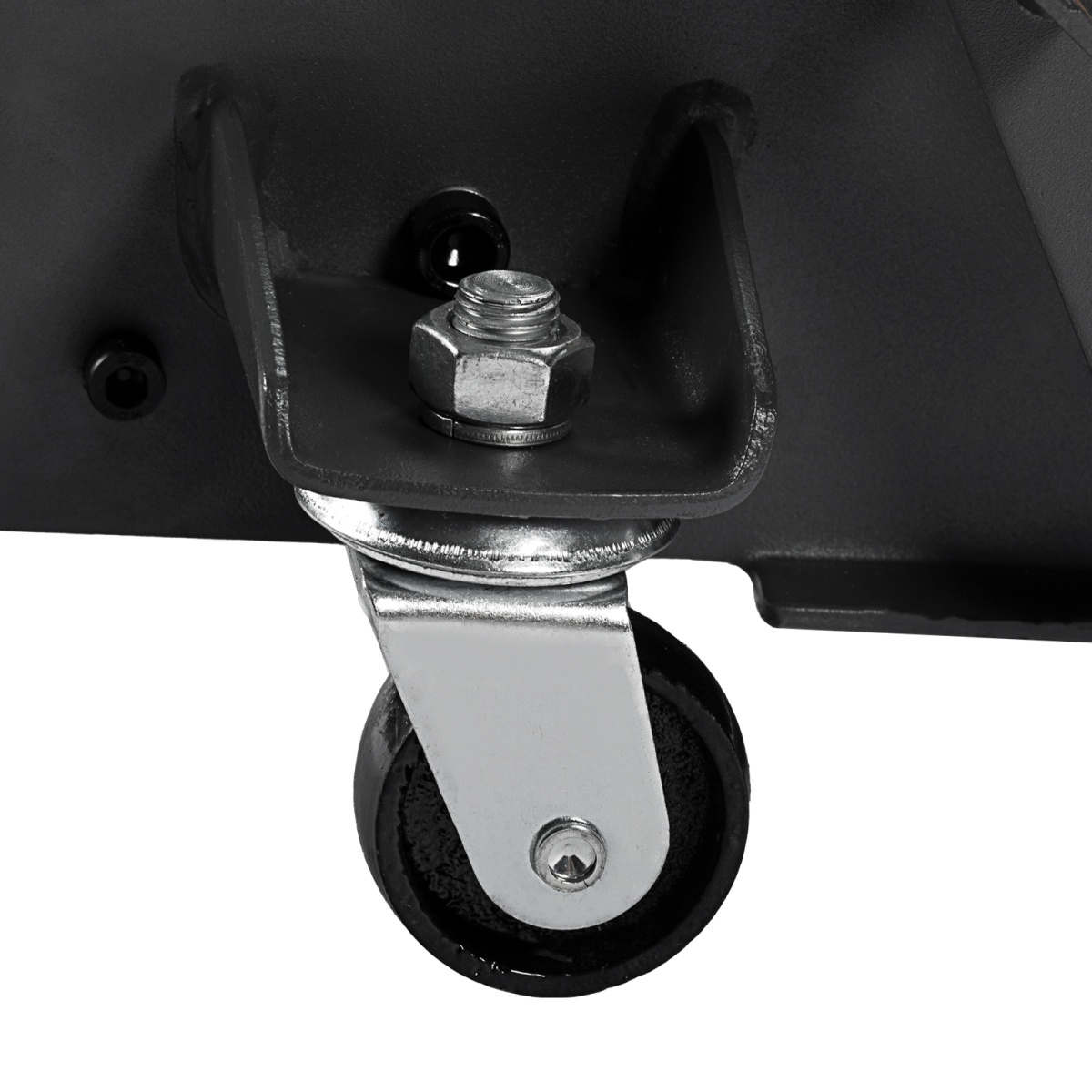 Благодаря двум насосам для достижения предельной высоты достаточно 6 качков рукоятки. Домкрат подходит для использования на станциях техобслуживания и шиномонтажа. Так же оборудован устройством поддерживающим подъемный рычаг на высоте 300 и 450 мм, для снятия с фиксации снабжен специальной педалью.