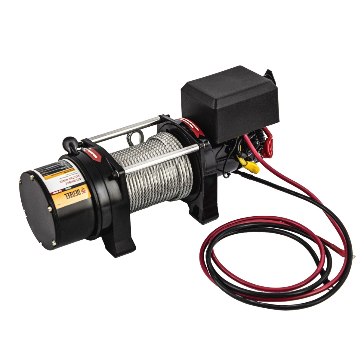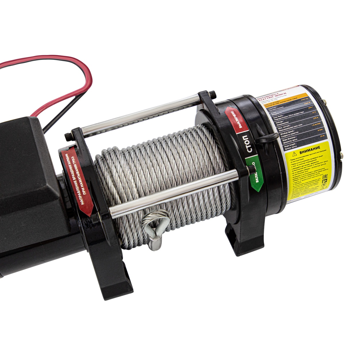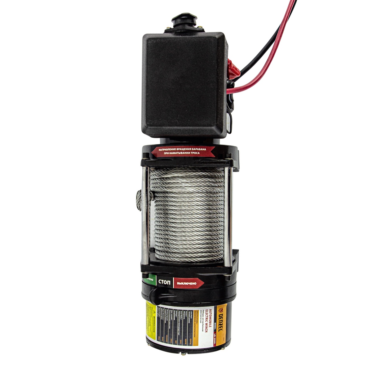 Лебедка Denzel LB-2000 52021 мощностью 3,2 кВт и скоростью намотки троса 1,6 м/мин используется для перемещения грузов в горизонтальной плоскости, а также эвакуации и вытягивания из водоемов и кюветов транспортных средств весом до 2,2 т, например, квадроциклов, легких внедорожников, сельхозтехники.