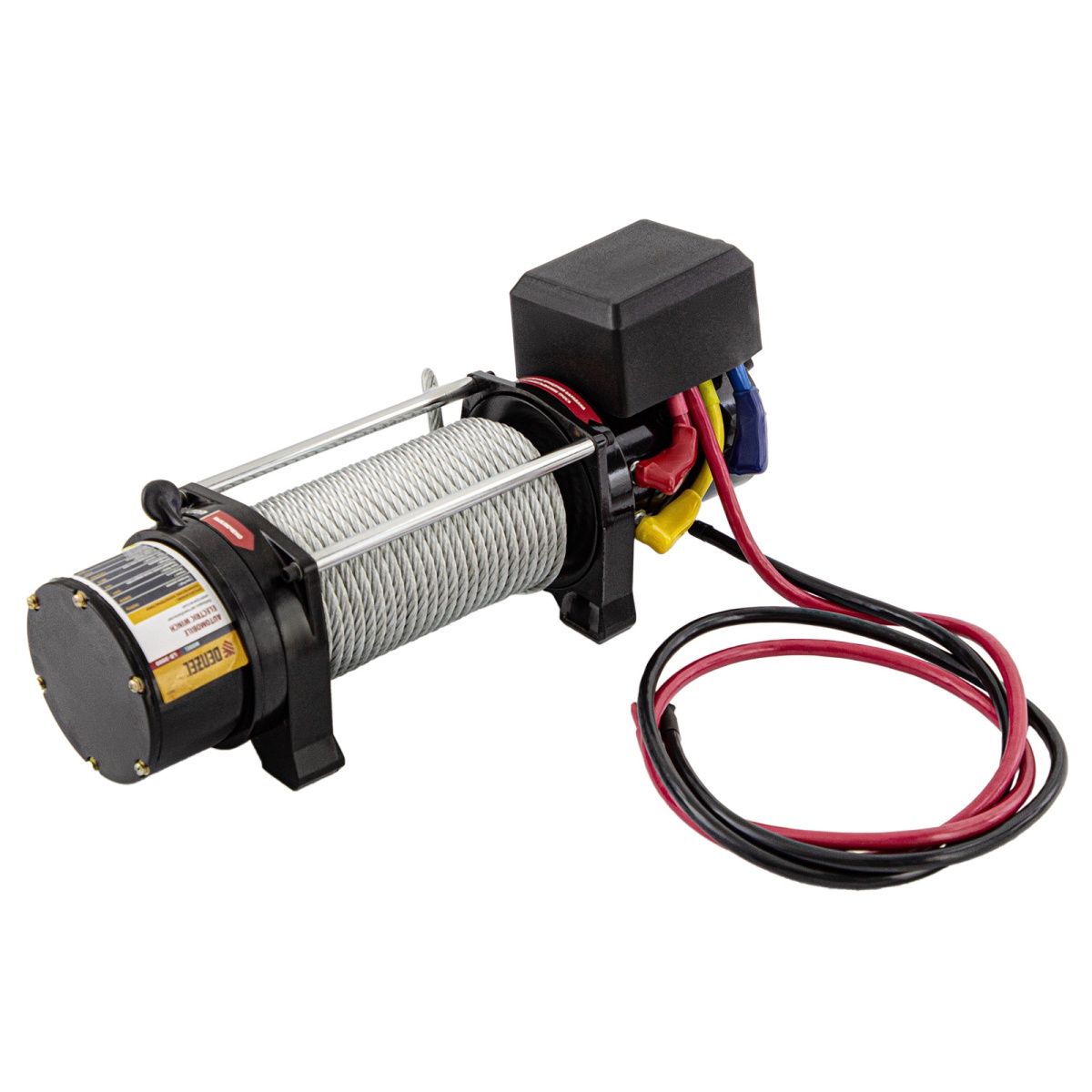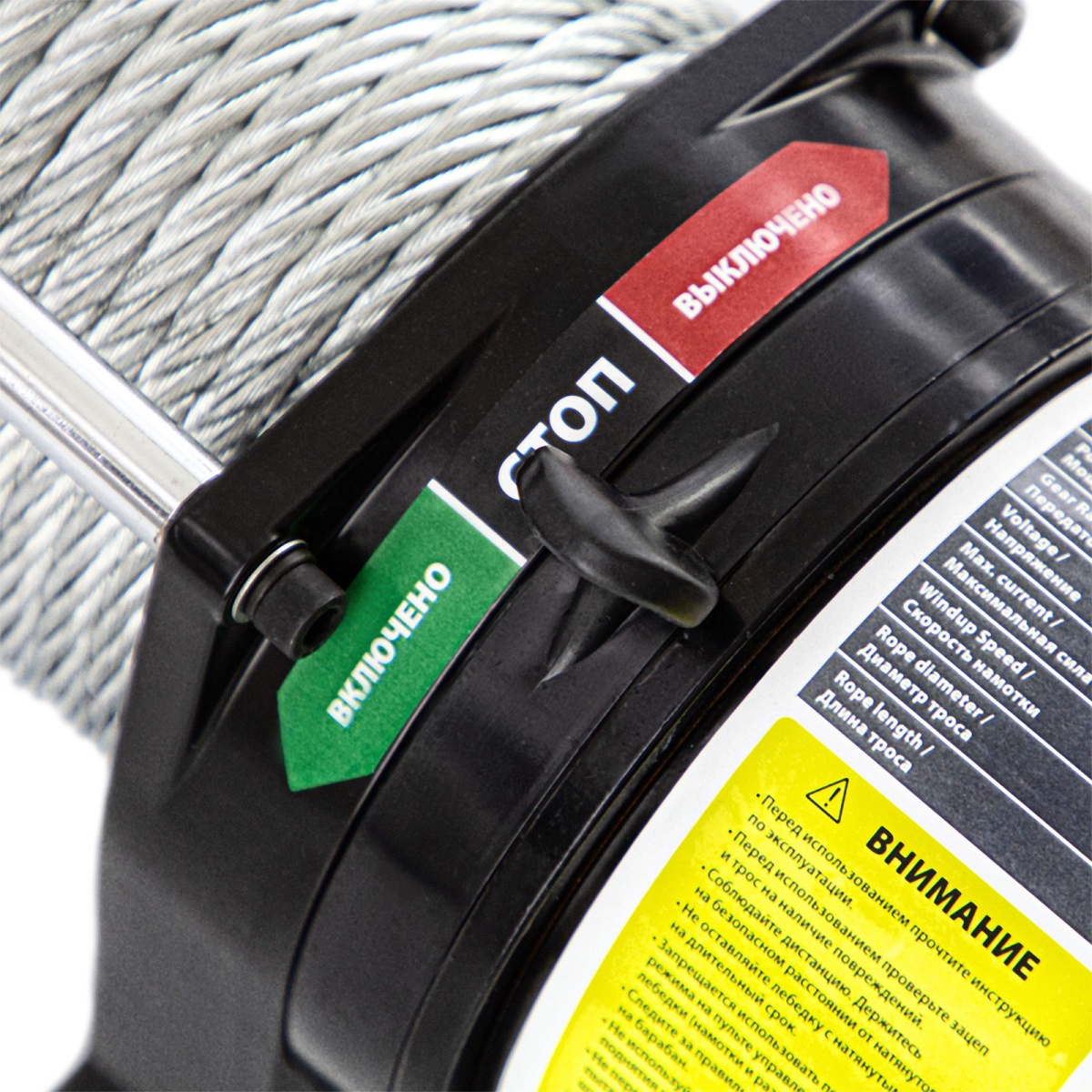 Лебедка Denzel LB-3000 52023 мощностью 3,4 кВт и скоростью намотки троса 1,9 м/мин используется для перемещения грузов в горизонтальной плоскости, а также эвакуации и вытягивания из водоемов и кюветов транспортных средств весом до 3,6 т, например, квадроциклов, легких внедорожников, сельхозтехники.