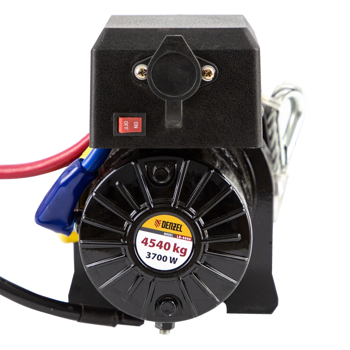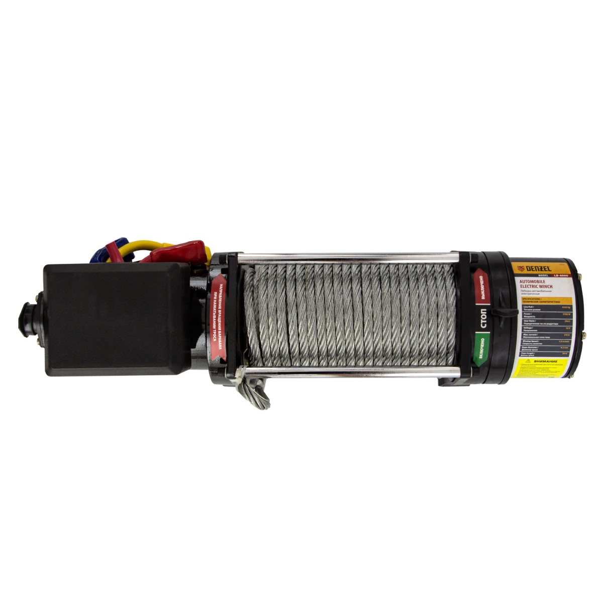 Лебедка Denzel LB-4000 52026 мощностью 3,7 кВт и скоростью намотки троса 1,5 м/мин используется для перемещения грузов в горизонтальной плоскости, а также эвакуации и вытягивания из водоемов и кюветов транспортных средств весом до 4,5 т, например, квадроциклов, легких внедорожников, сельхозтехники.