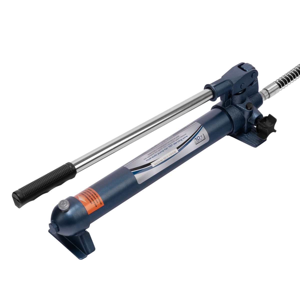 Гидравлическая растяжка Stels 51353, 10 т, в наборе из 17 предметов, включающем гидронасос, цилиндр, удлинители, адаптер, основание, 7 сменных насадок, и упакованном в металлический кейс, используется для восстановления деформированных металлоконструкций, преимущественно элементов автомобильного кузова.