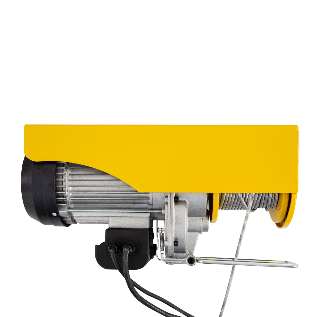 Высота подъема составляет 6 м при использовании полиспаста и 12 м без него, скорость — 4 и 8 м/мин соответственно. Устройство пригодится в гараже, автомастерской или на строительной площадке. Полиспаст входит в комплект поставки.
