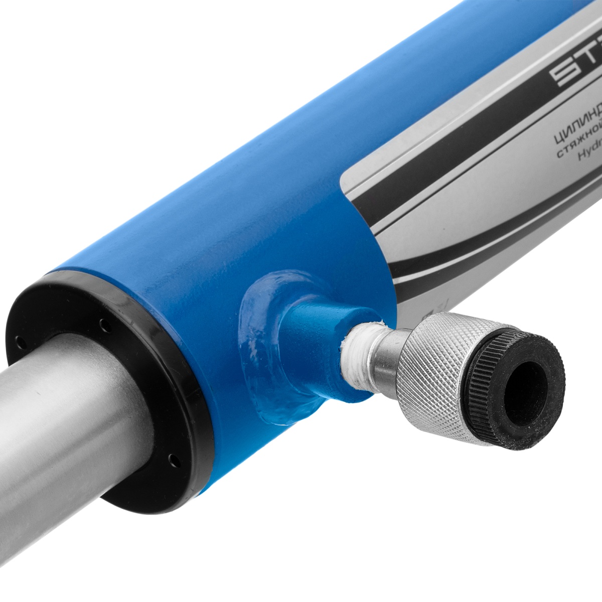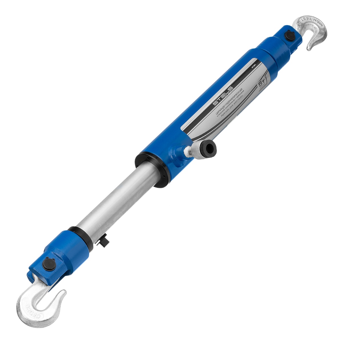 Стяжной гидравлический цилиндр Stels 51361, усиленный, с крюками, используется в паре с насосом и позволяет прикладывать усилие стягивания величиной в 5 т.