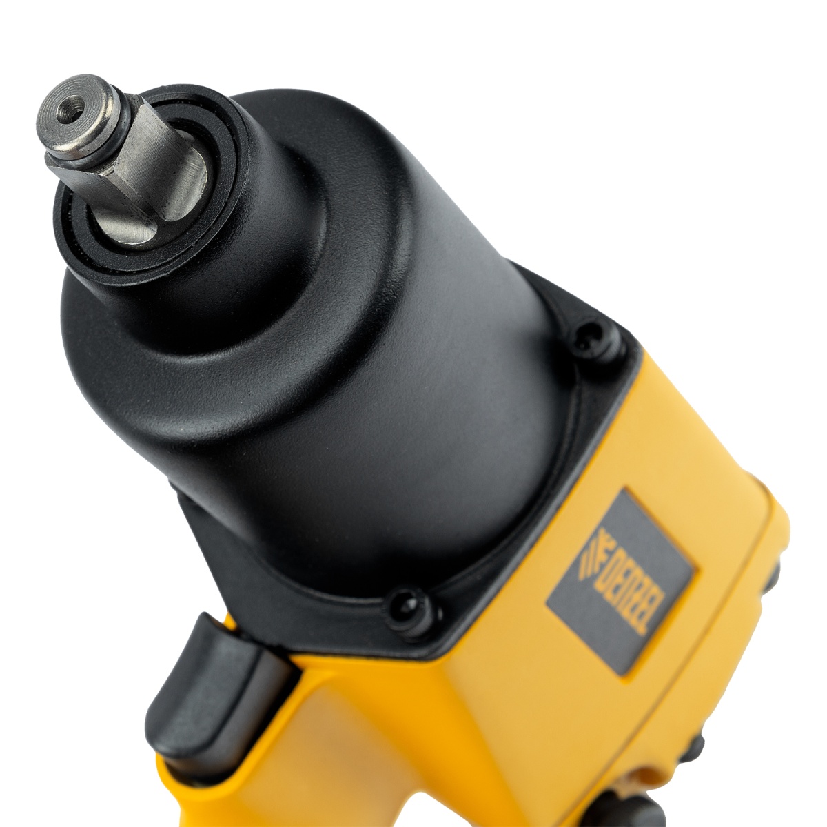 - Простая подготовка к работе — гайковерт подключается к компрессору при помощи быстроразъемного соединения.