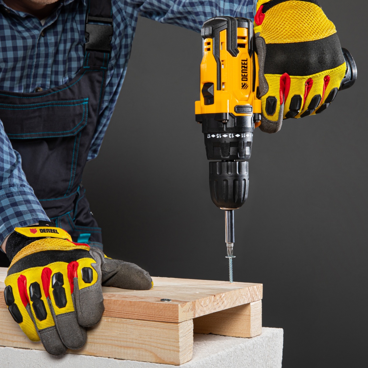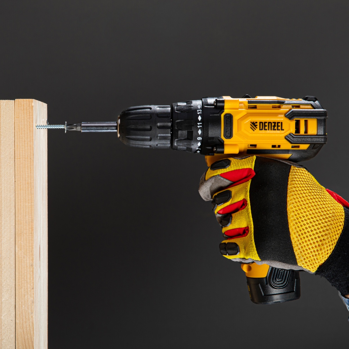 Аккумуляторная дрель-шуруповерт Denzel CDL-12CB 26102 с батареей Li-Ion 12 В предназначена для монтажа и демонтажа резьбовых соединений, сверления отверстий в металле (до 10 мм), древесине (до 16 мм), пластмассе и других материалах. Инструмент пригодится профессионалам и любителям на строительной площадке, дома или на даче.Надежный литий-ионный аккумулятор без эффекта памяти обеспечивает долгий срок службы инструмента. Дрель не зависит от сети питания, что делает удобной работу на строительных объектах, на высоте и в отдаленных участках дома.Преимущества17+1 ступень регулировки крутящего момента — вы с легкостью подберете оптимальное усилие затяжки под тип крепежа.Два режима вращения — можно настроить скорость в диапазоне 0-400 или 0-1450 об/мин для работы с резьбовыми крепежами и сверления отверстий.Мгновенное переключение между задачами — реверс позволяет быстро перейти от монтажа к демонтажу крепежных элементов.Подсветка рабочей зоны — решать поставленные задачи удобно даже в условиях плохой освещенности и в труднодоступных местах.Защита от перетягивания крепежа — благодаря тормозу выбега шпиндель моментально останавливается после выключения.Высокий ресурс — корпус из ударопрочного пластика и металлические шестерни редуктора обеспечивают долгий срок службы инструмента.Быстрая и безопасная зарядка — на восстановление работоспособности аккумулятора требуется всего 1 час.Индикация уровня заряда — можно вовремя зарядить батарею, избежав перерывов да.Комфортная эксплуатация — прорезиненная рукоятка обеспечивает надежный хват и поглощает вибрации, снижая нагрузку на руки мастера.Готовность к работе — зарядное устройство и аккумулятор входят в комплект поставки.Гарантия 3 года — качество инструмента подтверждено производителем.