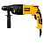 Электрический перфоратор Denzel RH-670-24 26605 мощностью 750 Вт, с патроном под хвостовик SDS-plus, имеет 3 режима, развивает энергию удара 2,5 Дж и используется для проведения отделочных и монтажных работ в режиме сверления, бурения и долбления. Эффективно работает с твердыми материалами. Максимальный диаметр отверстий в бетоне составляет 24 мм, в древесине — 40 мм, металле — 13 мм.ПреимуществаУстановка оптимального режима — скорость вращения шпинделя и частота ударов плавно регулируются в диапазоне 0-1100 об/мин и 0-5100 уд/мин соответственно.Ограничитель глубины — удобно сверлить одинаковые отверстия без дополнительных замеров.Реверс — застрявший в материале бур легко извлекается.Быстрая подготовка к работе — хвостовик оснастки надежно фиксируется в патроне SDS-plus.Надежность — медная обмотка обеспечивает стабильную работу двигателя, ударопрочный пластиковый корпус устойчив к повреждениям.Безопасная работа — в случае заклинивания бура вращение шпинделя блокируется для предотвращения травмирования пользователя.Электробезопасность — токопроводящие элементы имеют двойную изоляцию.Удобная эксплуатация — клавиша фиксации кнопки пуска исключает нечаянное переключение режимов.Работа при низкой температуре — кабель питания имеет резиновую изоляцию.Полная комплектация — перфоратор поставляется с набором оснастки.Комфортная работа — перфоратор весит 2,7 кг, обрезиненная рукоятка удобно ложится в руку.Удобное хранение и транспортировка — инструмент и оснастка упакованы в прочный кейс.Подтвержденное качество — гарантия на заводской брак действует 3 года.