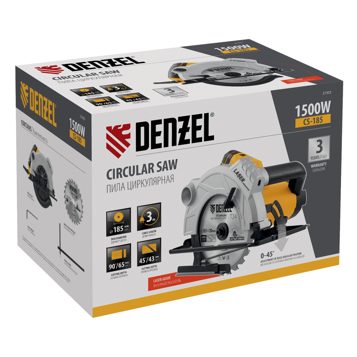 - Гарантия 3 года — высокое качество пилы Denzel подтверждено производителем.