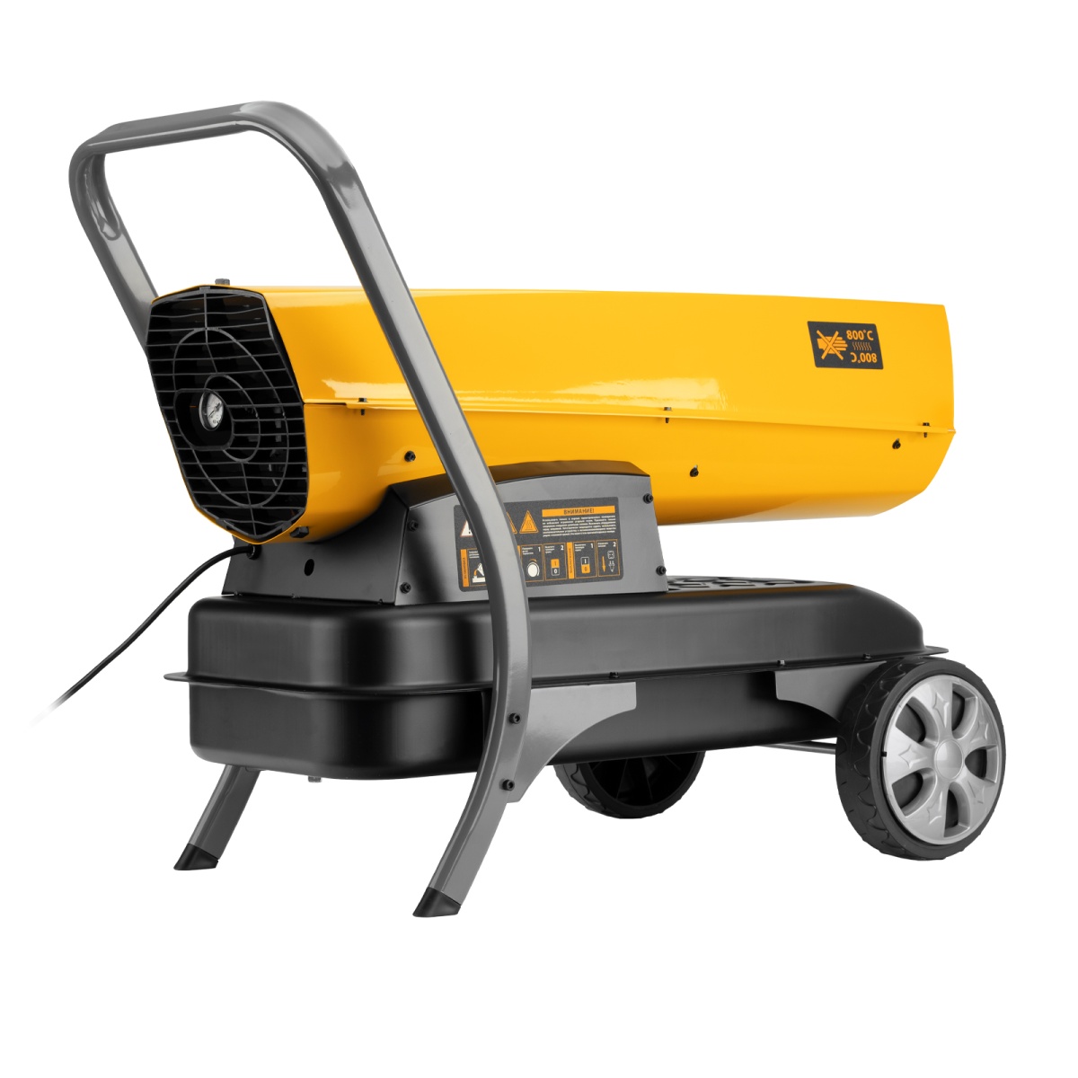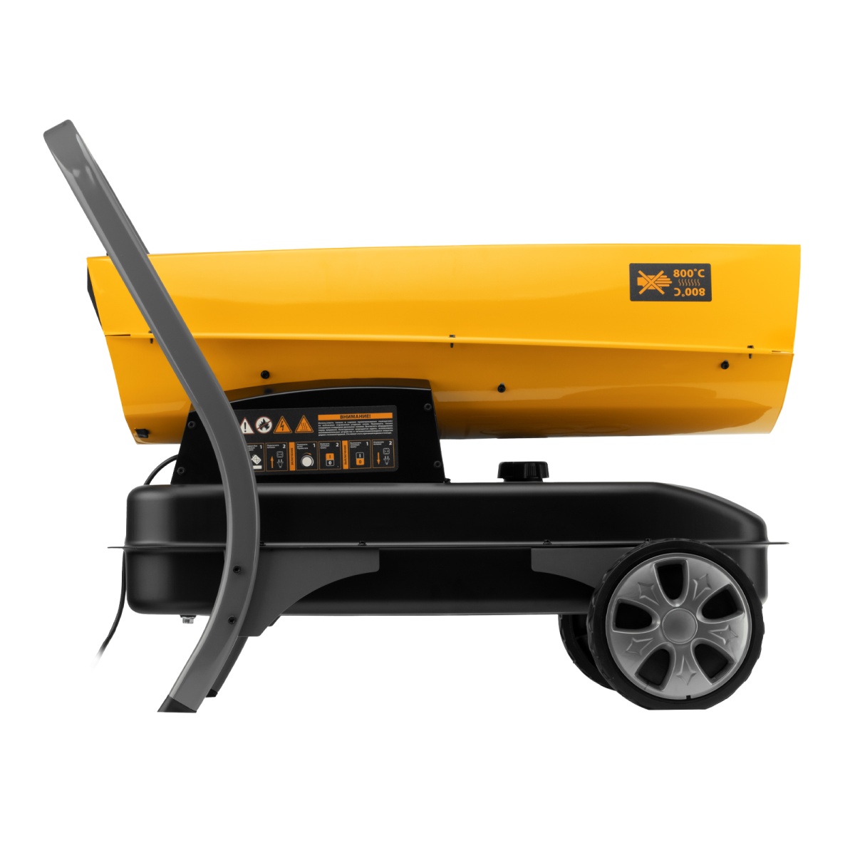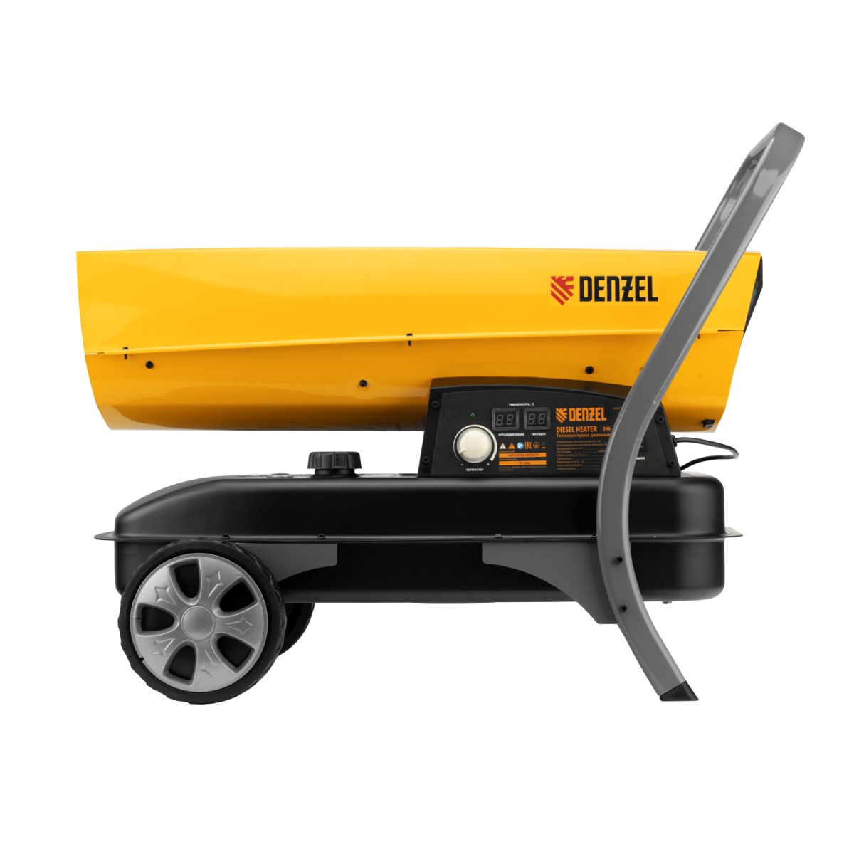 Дизельная тепловая пушка Denzel DHG-45i 96485 номинальной тепловой мощностью 45 кВт и производительностью 1000 куб. м/ч, с прямым типом нагрева, с электронным термостатом, предназначена для обогрева цехов, складов, теплиц и других нежилых помещений. Используется в строительстве и на производстве. Пушка характеризуется низким расходом топлива: полного бака хватает более чем на 9 часов работы. Важно: в обогреваемом помещении необходимо обеспечить хорошую вентиляцию.
