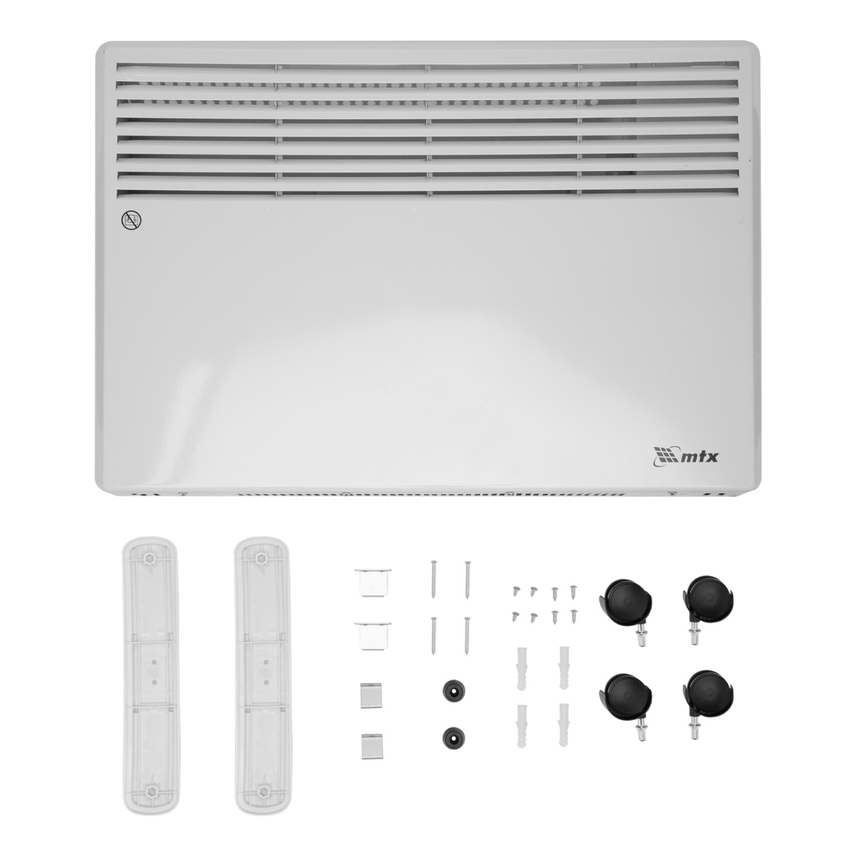 Электрический конвектор MTX CH-1500 98106 максимальной мощностью 1500 Вт, с X-образным нагревателем, термостатом и колесами, — источник тепла для жилых, офисных и хозяйственных помещений. X-образный нагревательный элемент позволяет быстро и равномерно нагреть помещение до нужной температуры. Площадь обогрева составляет 20 м2.