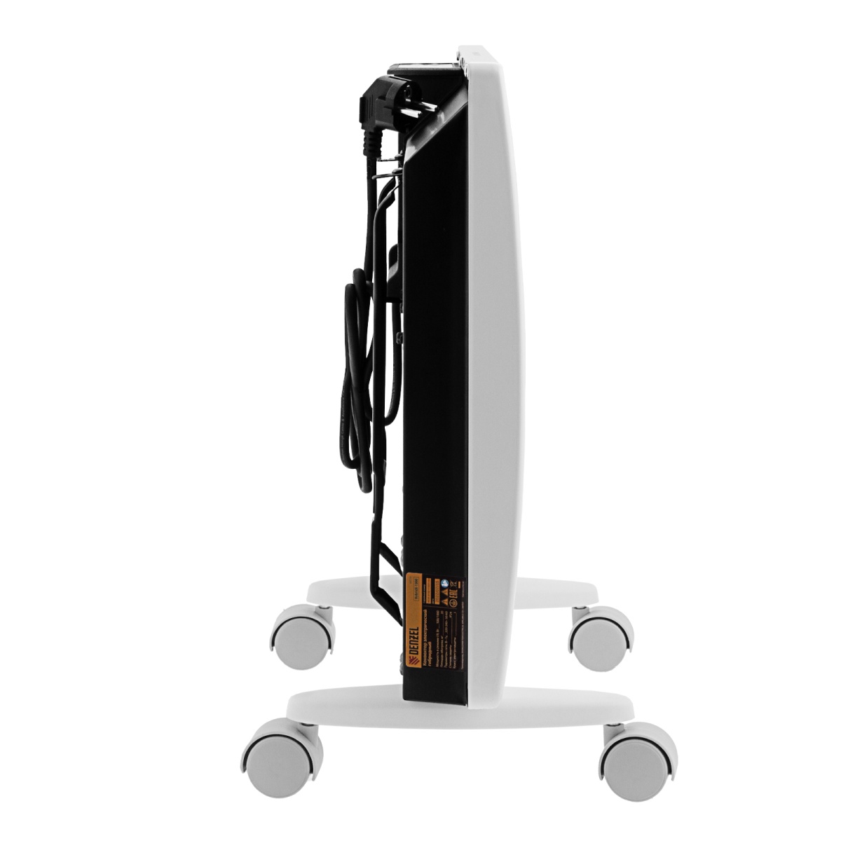 - Высокая энергоэффективность — гибридный нагревательный элемент излучает инфракрасное тепло и одновременно обеспечивает конвекцию воздуха, что позволяет прогревать помещение заметно быстрее при тех же затратах энергии.