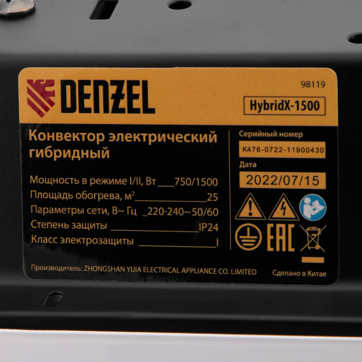 Гибридный электрический конвектор Denzel HybridX-1500 98119 с X-образным инфракрасным нагревательным элементом, LED-дисплеем и цифровым термостатом рассчитан на обогрев закрытых помещений площадью до 25 кв.м. Оптимален для использования в квартирах, на дачах, в офисах, а также в бытовых, общественных и производственных помещениях. Регулировка мощности 750/1500 Вт позволяет выставить желаемую скорость обогрева помещения. Устройство поддерживает механический и автоматический режимы, что позволяет максимально точно настроить его работу под свои потребности.