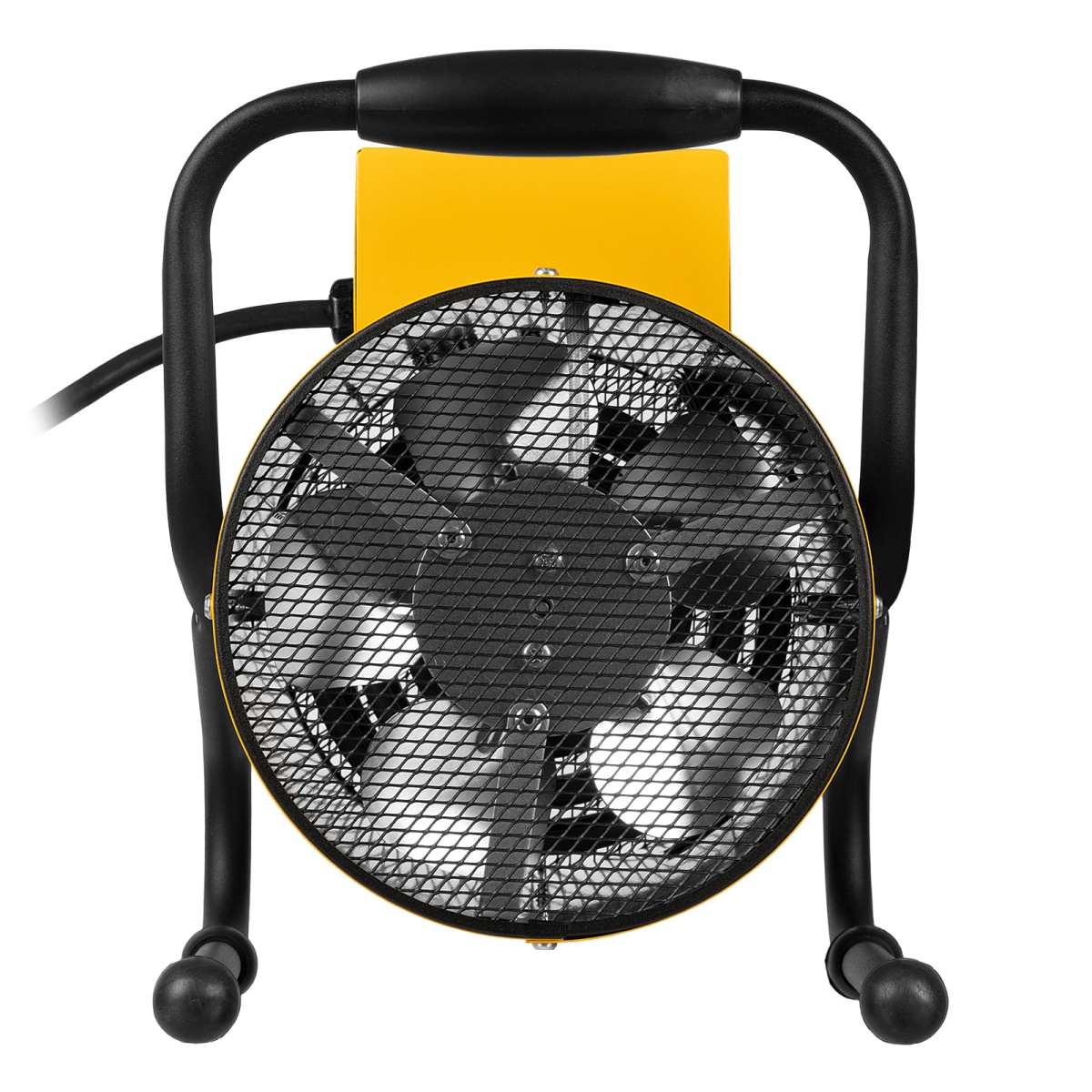 Тепловая пушка профессиональной серии Denzel SFH-5000 96438 питается от сети 230 В и генерирует воздушный поток мощностью 260 м³/ч. Работает в одном из 3 режимов: вентилятор, обогрев на мощности 2250 и обогрев на мощности 4500 Вт. Используется в складских, производственных, общественных помещениях площадью до 45 м². Подходит для дистанционной просушки поверхностей, например, окрашенных или оштукатуренных стен во время отделочных работ.