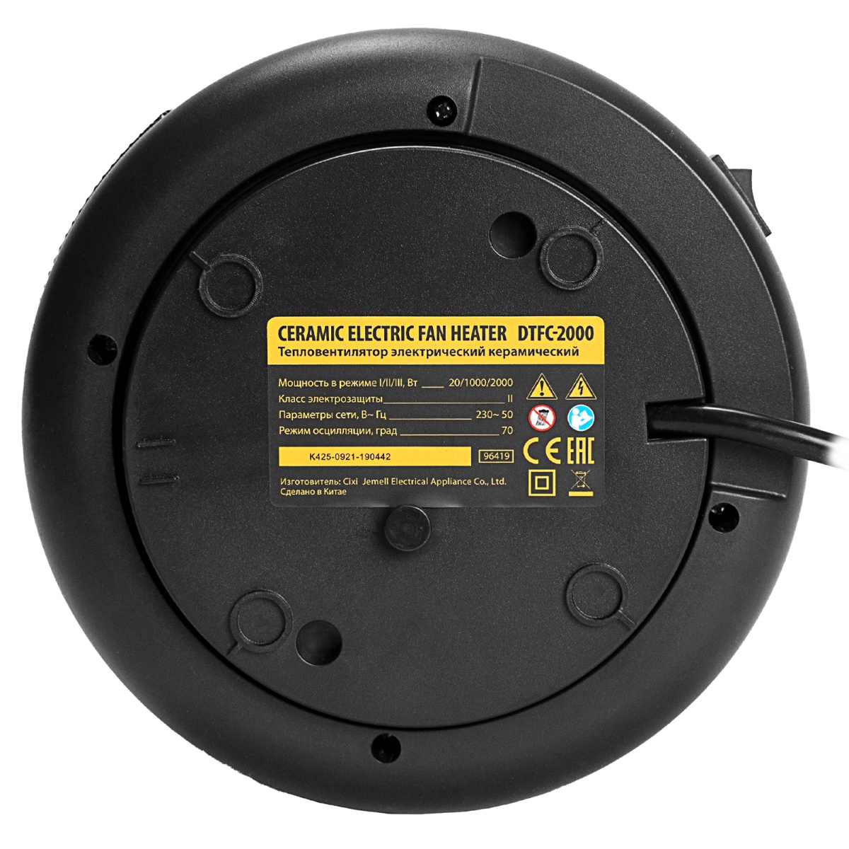 Электрический тепловентилятор Denzel DTFC-2000, 96419 с керамическим нагревательным элементом предназначен для обогрева и вентилирования бытовых помещений площадью до 20 м2. Он позволяет поддерживать комфортный климатический режим как в холодное, так и в теплое время года. Удобный и компактный тепловентилятор способен работать в 3 режимах: вентиляция, обогрев теплым и горячим воздухом. С помощью цифрового терморегулятора можно настроить необходимую температуру.