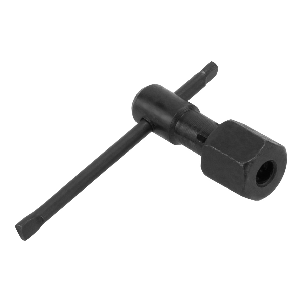 - Метчикодержатель оснащен регулируемым винтовым механизмом, который позволяет надежно фиксировать метчики с хвостовиками от 2,4 до 6,4 мм.