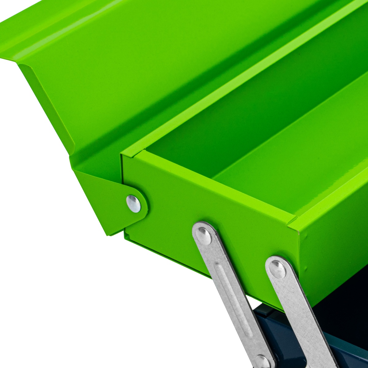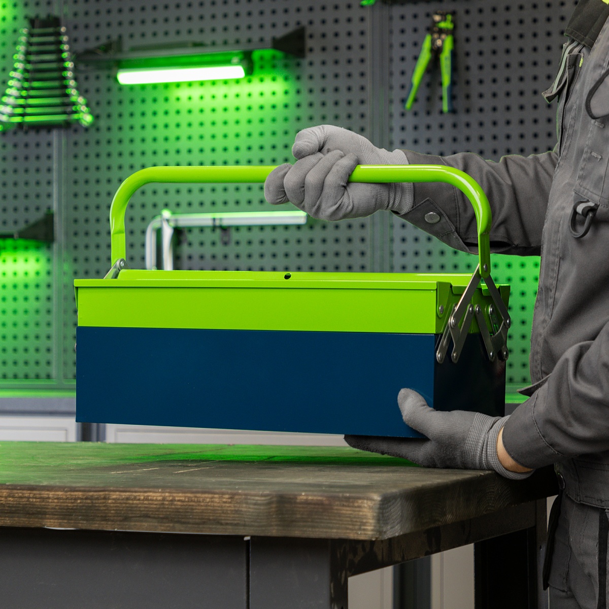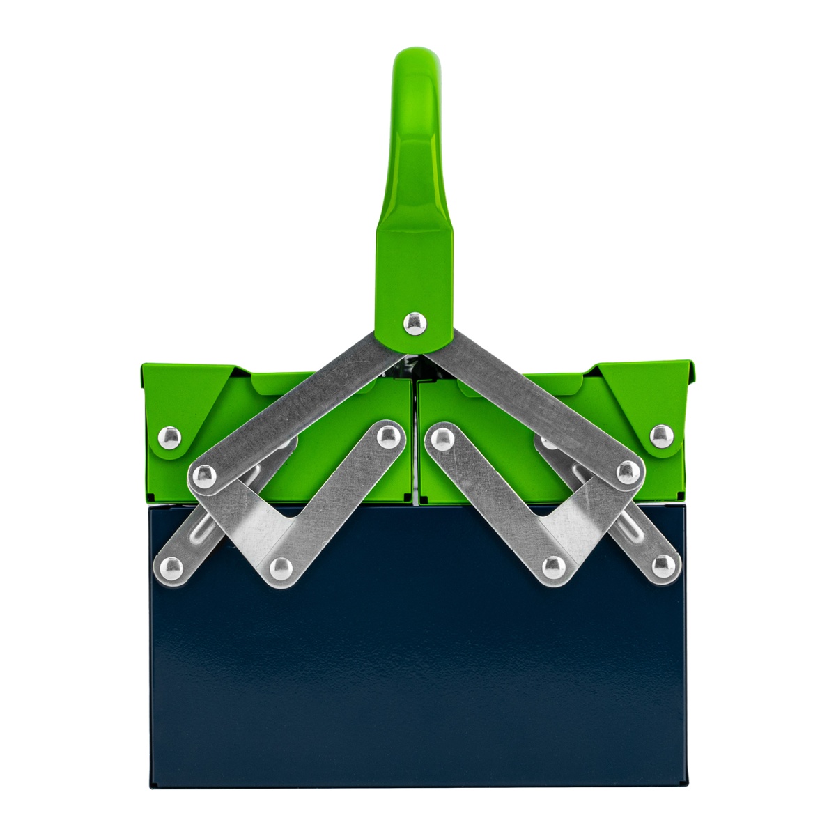 Металлический ящик Сибртех 90750, 430 х 200 х 160 мм, с тремя секциями, используется для размещения инструментов, хозяйственных мелочей, крепежных элементов или рыболовных принадлежностей. Предметы удобно раскладываются по отделениям, что обеспечивает порядок во время их хранения и транспортировки. Ящик пригодится в поездке, на рыбалке, а также дома, на даче или в гараже.ПреимуществаЯщик очень вместителен благодаря выдвижным секциям, в нем поместится большое количество предметов.Металлический корпус покрыт порошковой эмалью для защиты от коррозии, поэтому прослужит долго.Ящик легко раскладывается, поэтому поиск нужного предмета не занимает много времени.Ручка поворачивается и не мешает размещать или извлекать инструменты.