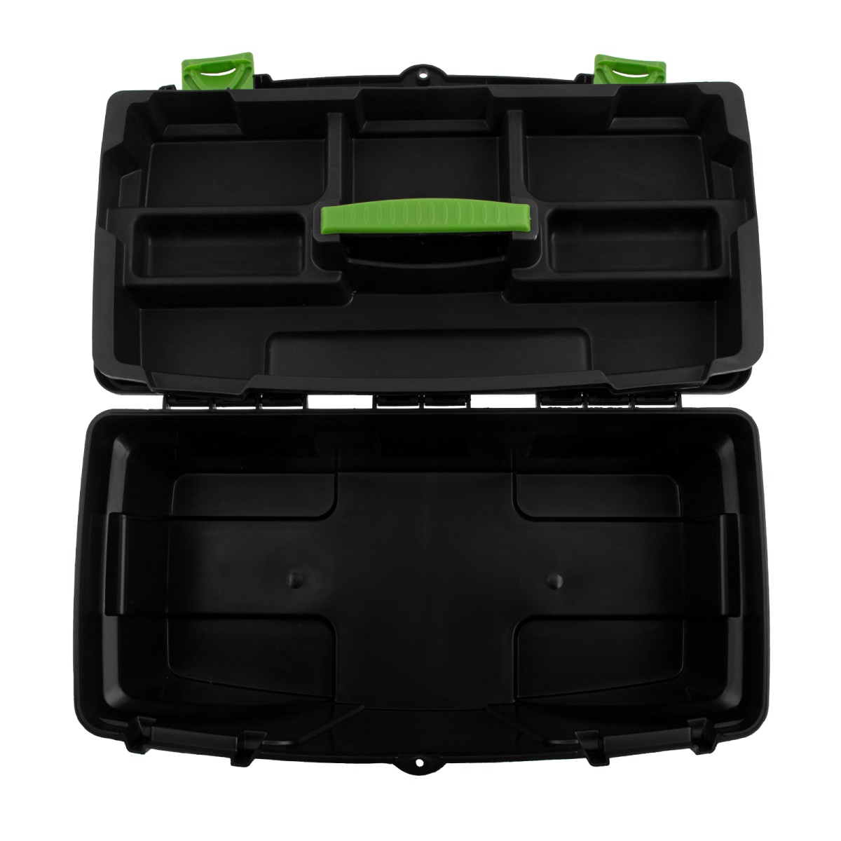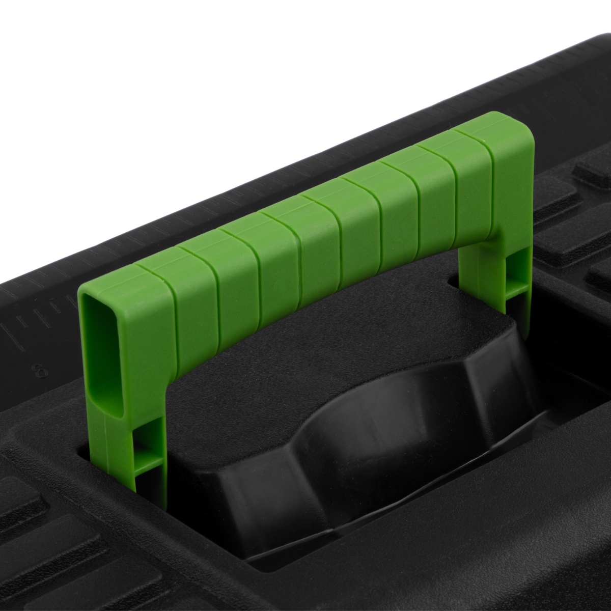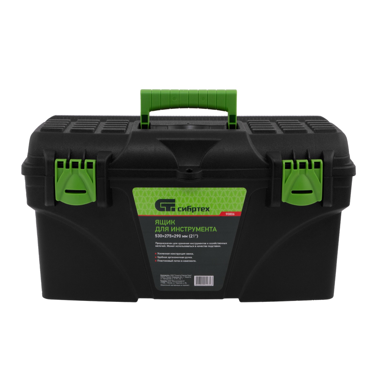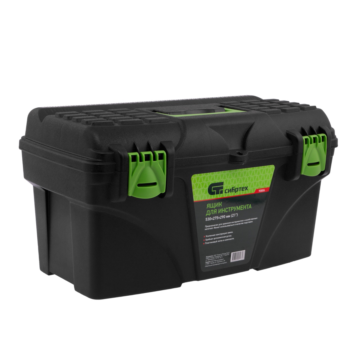 Ящик для инструмента Сибртех 90806 из пластика, 21 дюйм, 530 х 275 х 290 мм, — удобное вместилище для инструментов, бытовых мелочей, рыболовных снастей. На крышку нанесена измерительная шкала в сантиметрах и дюймах, поэтому можно проводить измерения, даже если под рукой нет линейки. Ящик пригодится в поездке, на рыбалке, а также дома, на даче или в гараже.ПреимуществаТрехрядные петли усиливают конструкцию замка и верхней крышки, поэтому в ящик можно положить много инструментов.Съемный лоток с ручкой позволяет максимально удобно организовать пространство внутри ящика, а также использовать его для хранения метизов.Корпус усилен ребрами жесткости, поэтому ящик устойчив к повреждениям в результате удара или падения.Эргономичная ручка на крышке облегчает транспортировку ящика.