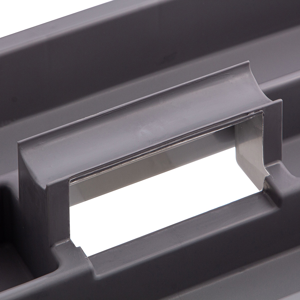 Ящик для инструмента Stels 90705, 20 дюймов, габаритами 500 х 260 х 260 мм, из пластика, предназначен для переноски и хранения инструментов, хозяйственных мелочей, рыболовных снастей. Содержимое не рассыпется, поскольку он надежно закрывается. Встроенные в крышку отделения обеспечивают быстрый доступ к крепежам и другим необходимым предметам. Большой ящик для хранения инструментов будет полезен дома, на даче, в гараже и на рыбалке.ПреимуществаЯщик выполнен из прочного и легкого пластика, рассчитан на долгий срок службы.На крышке предусмотрена ручка, облегчающая транспортировку контейнера.В ящике имеется съемный лоток, что позволяет удобно расположить инструменты разного размера, а также крепежи и мелкие детали.