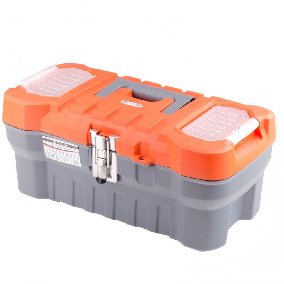 Ящик для инструмента с металлическими замками Stels 90711, 16 дюймов, 410 х 210 х 175 мм, — альтернатива коробке для инструментов. В нем можно расположить ручной инструмент, крепежи, хозяйственные мелочи, а также рыболовные снасти. В крышке имеются встроенные органайзеры для мелких деталей, что увеличивает функциональность ящика. Его удобно брать в поездки, также ящик пригодится дома, на даче или в гараже.ПреимуществаЯщик рассчитан на значительные нагрузки, поэтому в него можно положить много инструментов и расходников.Благодаря замку из металла ящик надежно защищен от самопроизвольного открывания.Съемный лоток с ручкой позволяет рационально организовать пространство внутри контейнера для хранения инструментов.