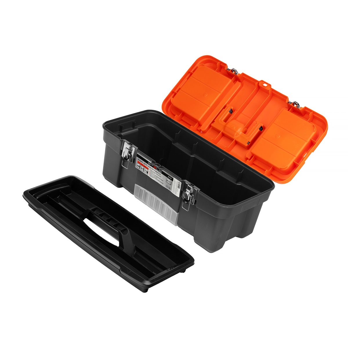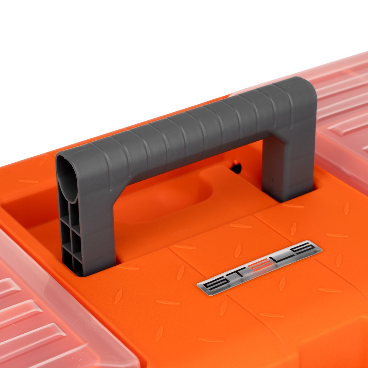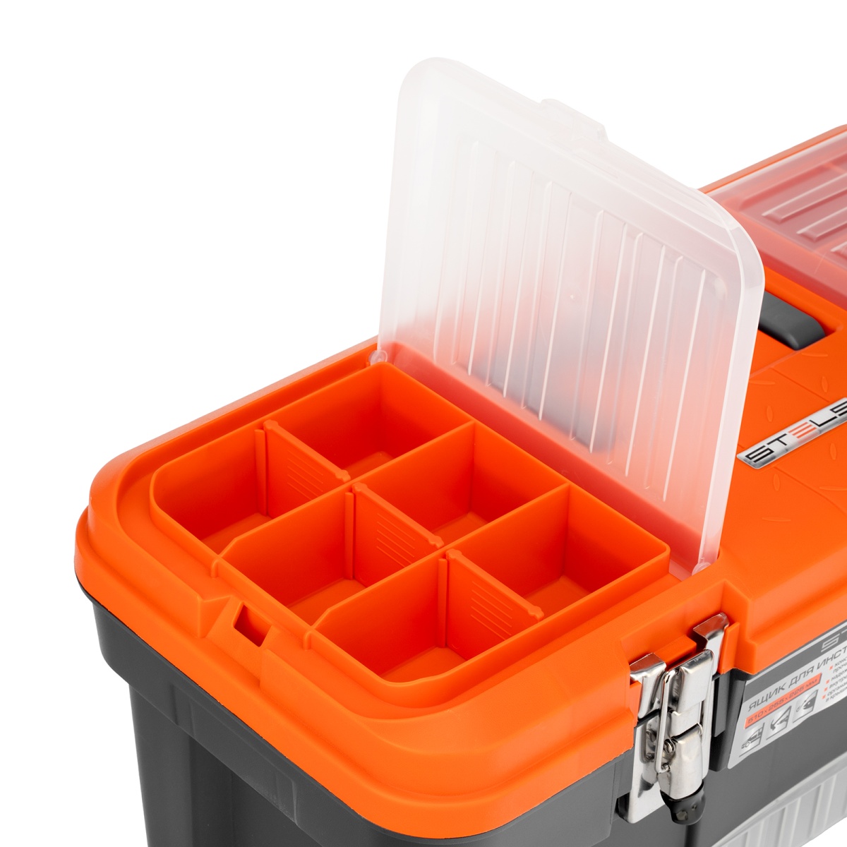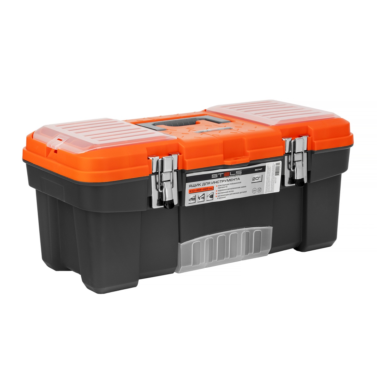 Ящик для инструмента с металлическими замками Stels 90747, 20 дюймов, 510 х 255 х 225 мм, — альтернатива коробке для инструментов. В нем можно расположить ручной инструмент, крепежи, хозяйственные мелочи, а также рыболовные снасти. В крышке имеются встроенные органайзеры, на дне - выкидной лоток с отсеками для мелких деталей, что увеличивает функциональность ящика. Его удобно брать в поездки, также ящик пригодится дома, на даче или в гараже.ПреимуществаЯщик рассчитан на значительные нагрузки, поэтому в него можно положить много инструментов и расходников.Благодаря замку из металла ящик надежно защищен от самопроизвольного открывания.Съемный лоток с ручкой позволяет рационально организовать пространство внутри контейнера для хранения инструментов.