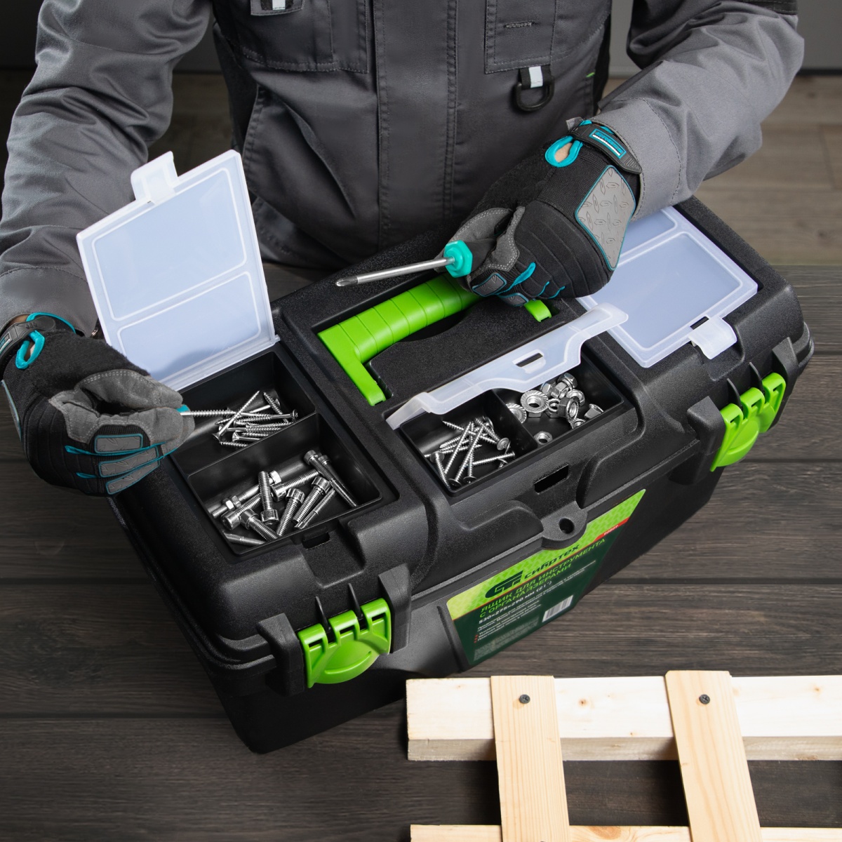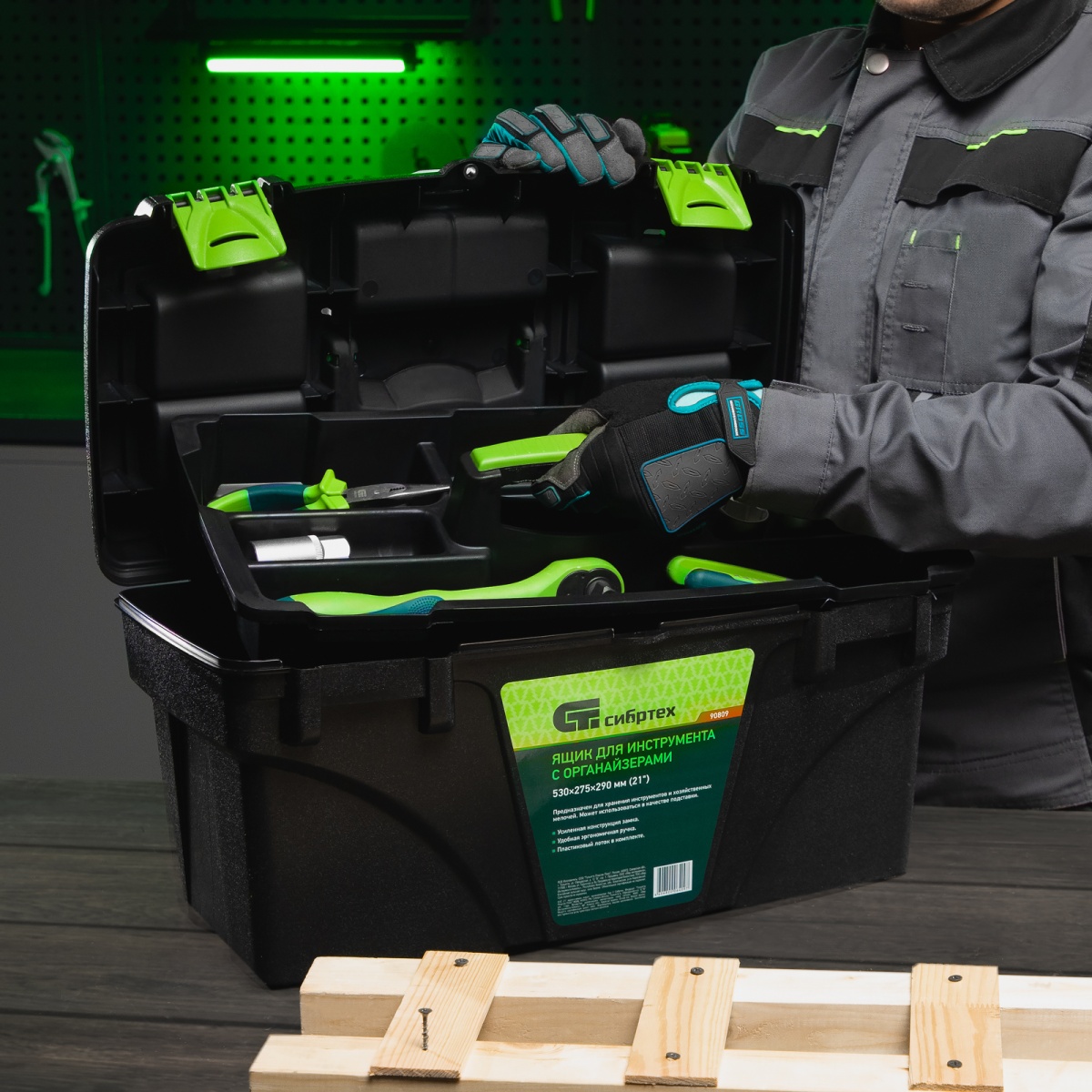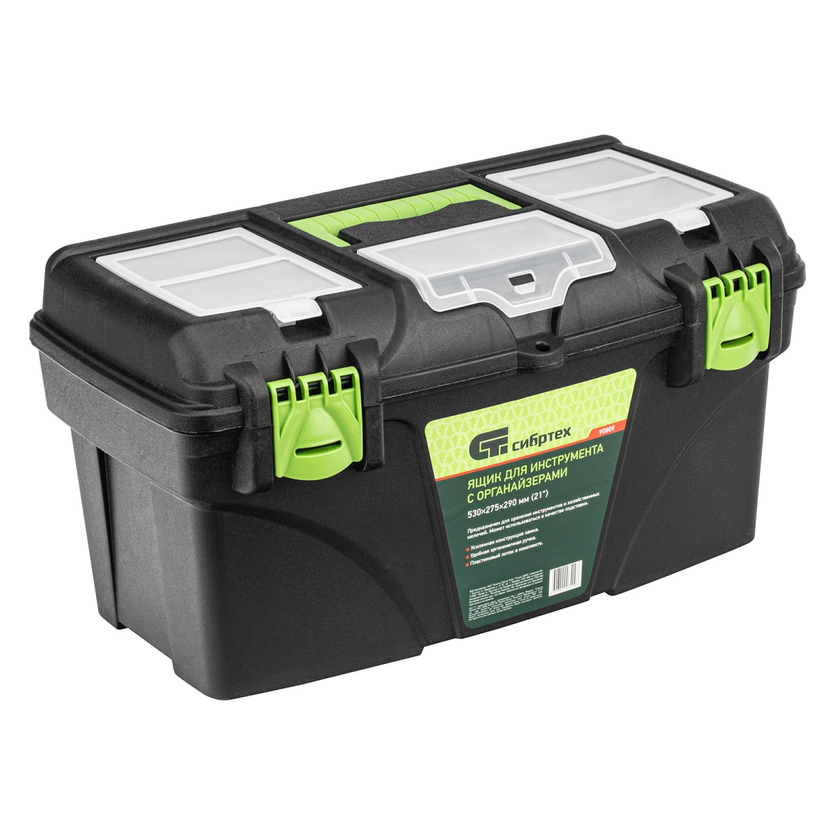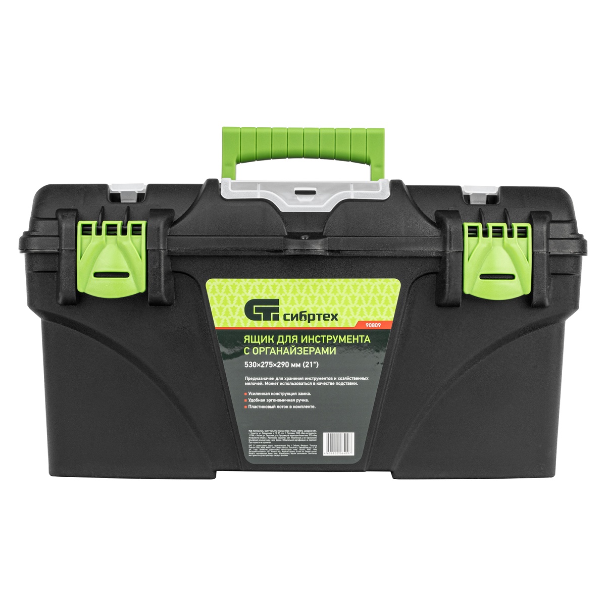 Ящик Сибртех 90809, 21 дюйм, с органайзерами, используется для хранения и транспортировки инструментов, оснастки, крепежей, хозяйственных мелочей и других предметов. Крышка и замок усилены трехрядными петлями, поэтому он выдерживает вес содержимого до 50 кг. Ящик можно брать в поездку, также он пригодится дома, на даче или в гараже.ПреимуществаВ крышке предусмотрены органайзеры, в которых можно рассортировать крепежи и другие мелкие детали.Съемный лоток с ручкой позволяет оптимизировать пространство внутри ящика.Удобная ручка облегчает транспортировку даже максимально заполненного ящика.Ручка утапливается в крышке, поэтому при необходимости ящик может служить подставкой.