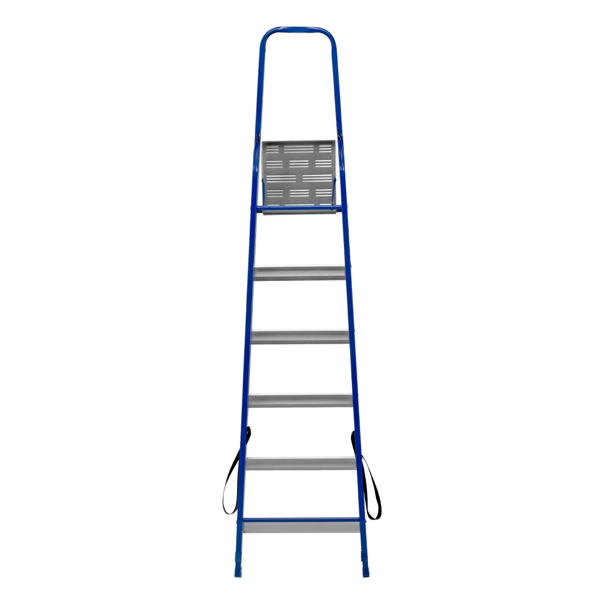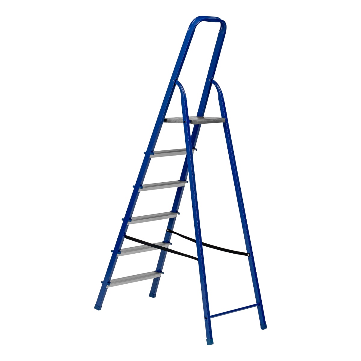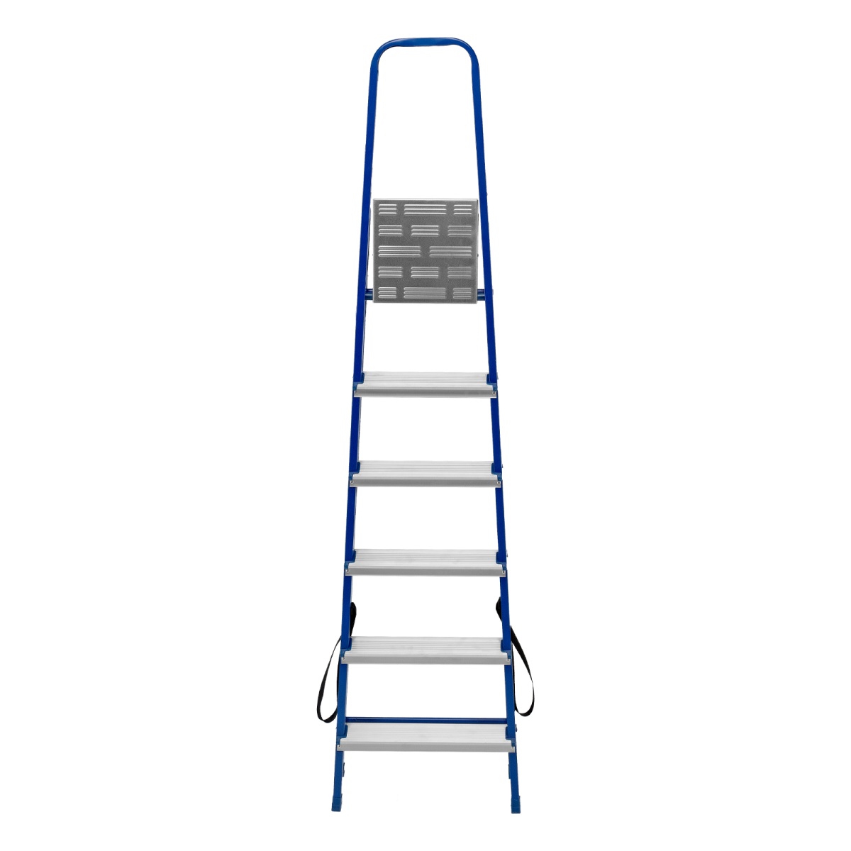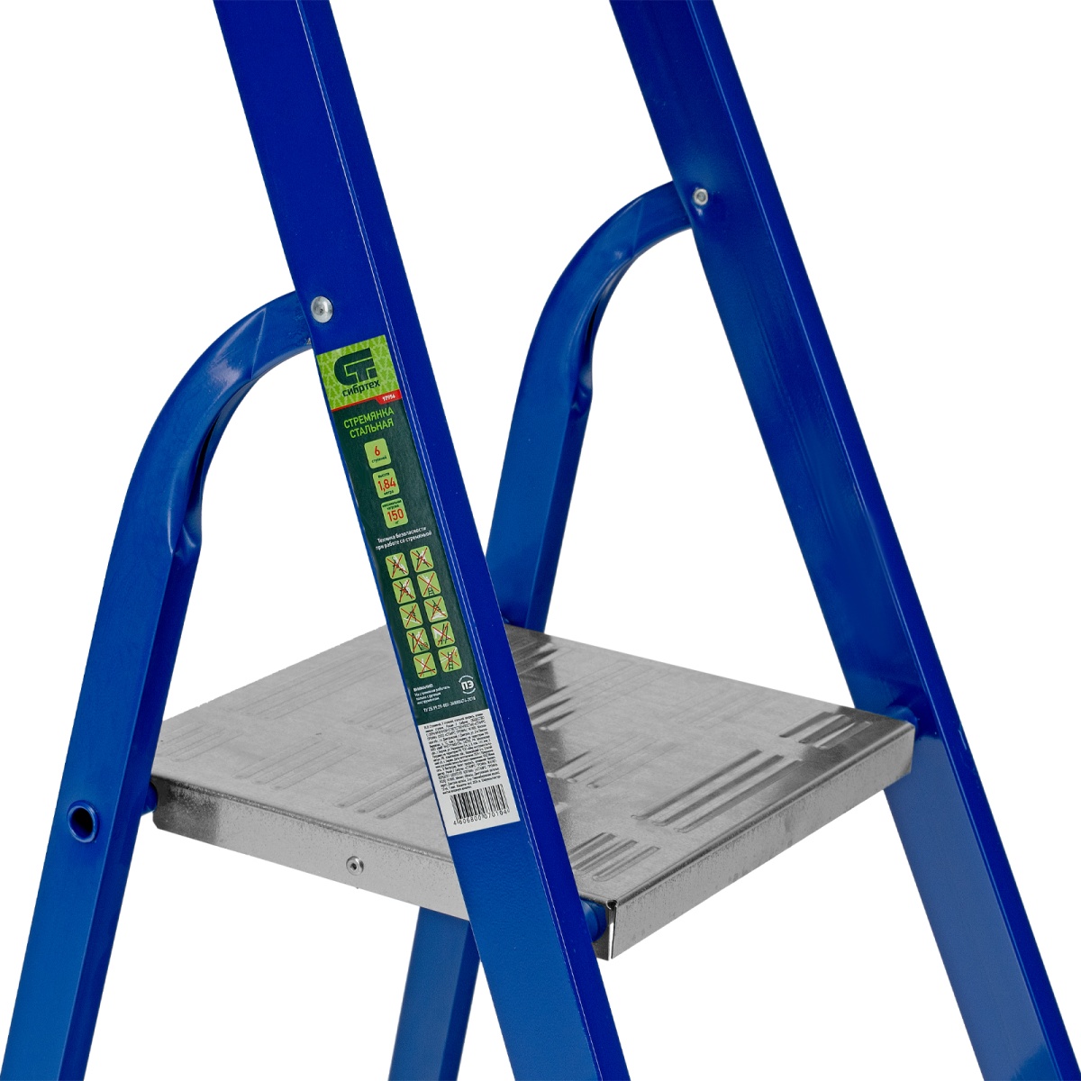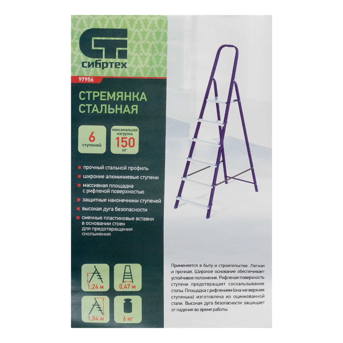 Стремянка Сибртех 6 ступеней из стального профиля и алюминиевыми ступенями используется в быту: дом, сад, гараж, а так же коммунальной и строительной деятельности.