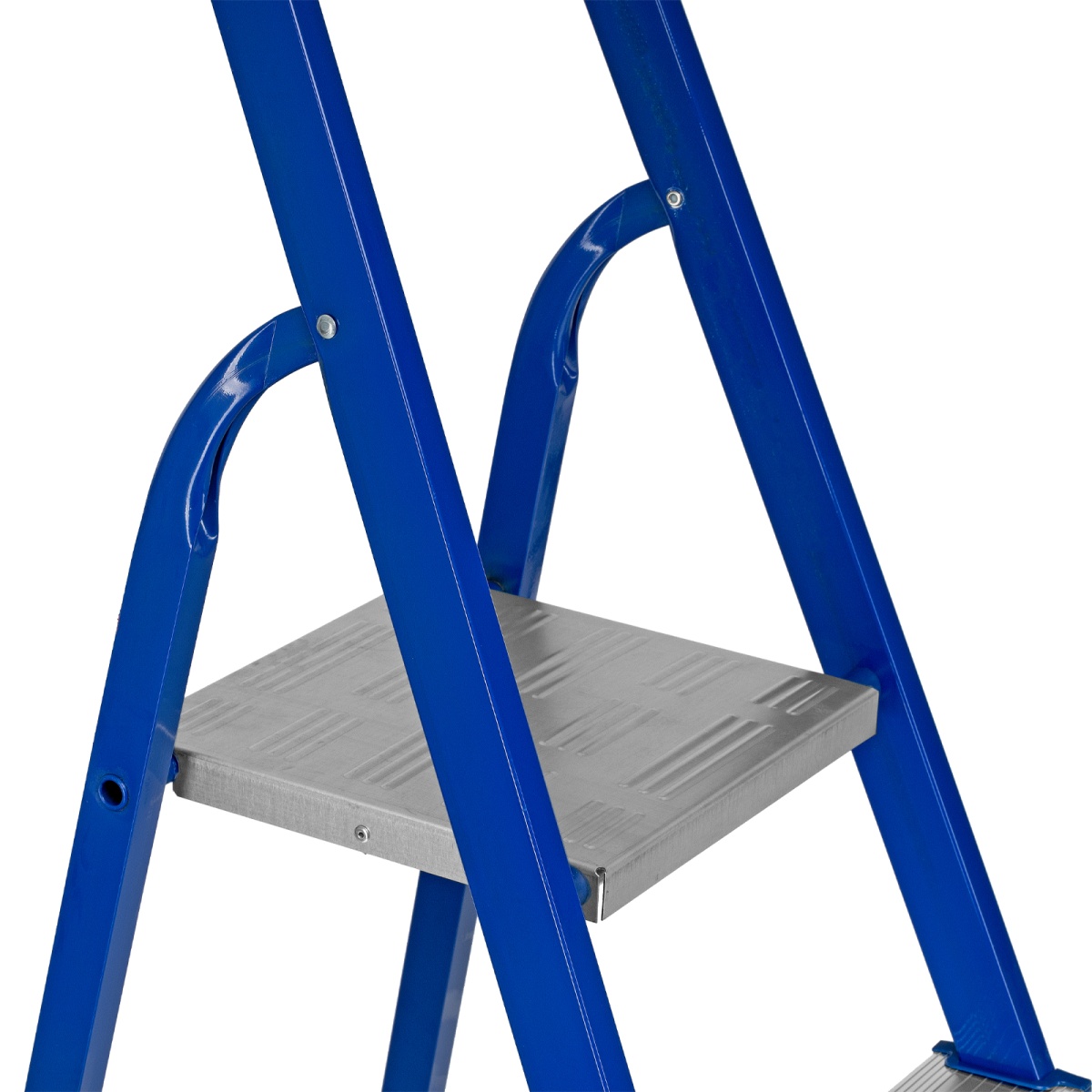 Прочная стальная рама прямоугольного сечения.Защитное покрытие стального профиля эмалью - цвет антрацит.Широкие профилированные ступени для длительной работы на высоте с противоскользящим рифлением.Устойчивая конструкция и надежная фиксация в рабочем положении.Высокая дуга безопасности, стальная рабочая площадка.Прочная страховочная лента для безопасной работы на большой высоте.Пластиковые рифленые наконечники на основании опорных направляющих предотвращают скольжение на рабочей поверхности, не повреждают покрытие пола.Устойчива к неблагоприятным внешним воздействиям, таким как коррозия.