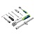 В комплект поставки входят карданы, удлинители и переходники, облегчающие работу в труднодоступных местах. Набор используется для ремонта автомобилей, а также полезен в быту.