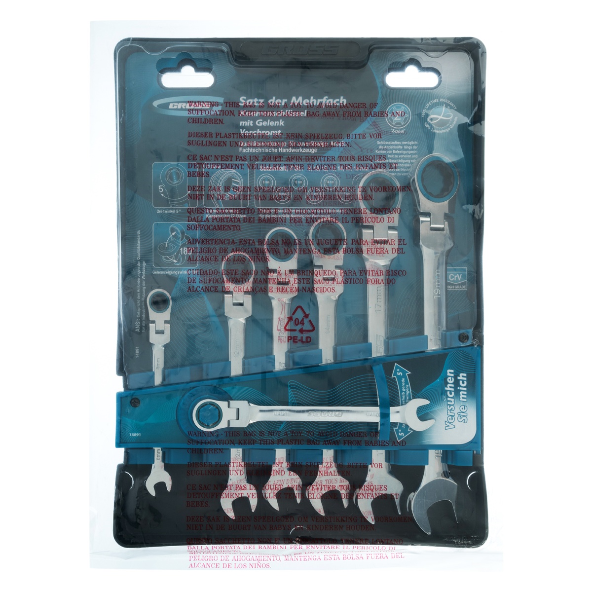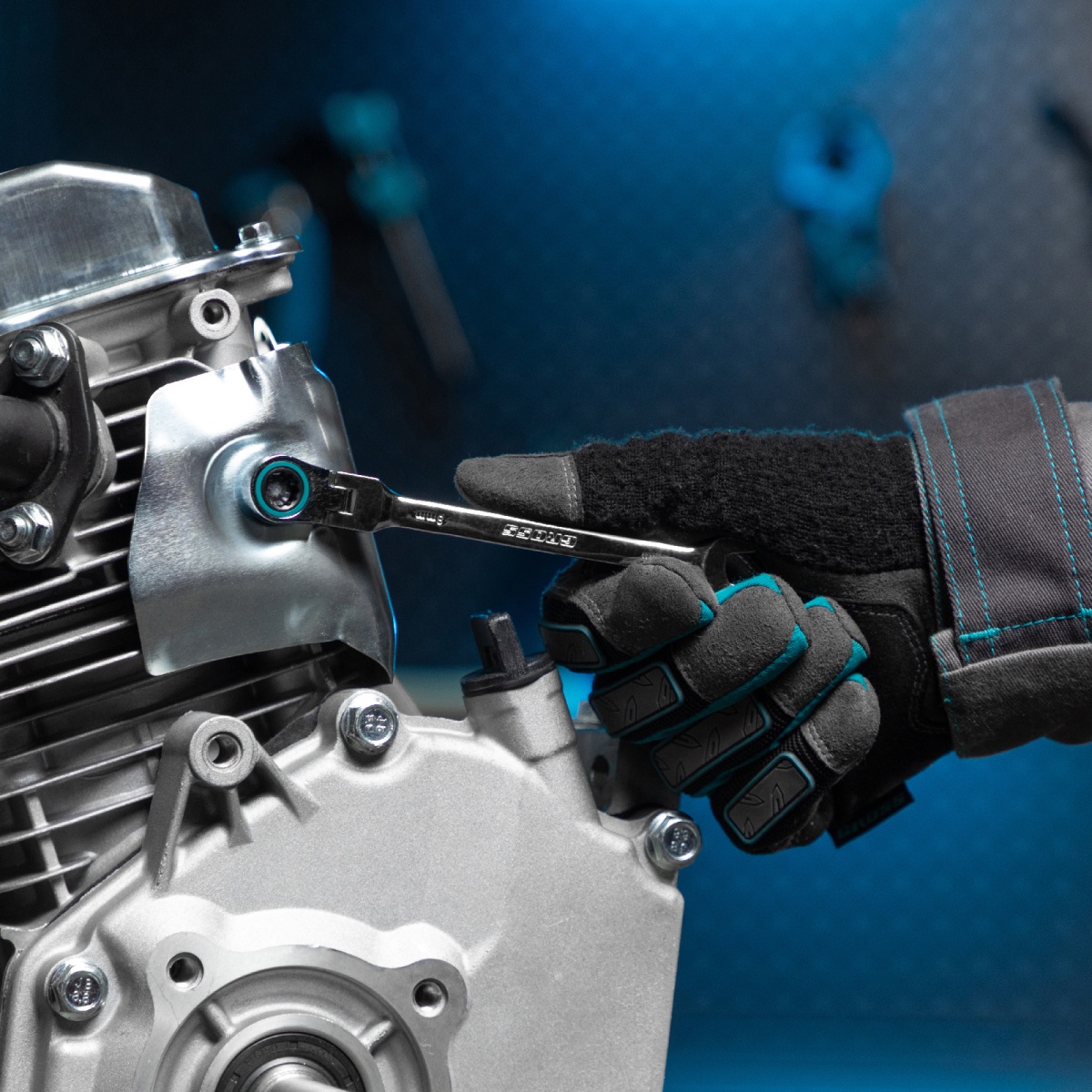 Благодаря наличию рожкового зева ключи подходят для любых типов крепежей. 12-гранная кольцевая головка обеспечивает надежный контакт с поверхностью болта или гайки, облегчая работу и уменьшая риск деформации граней крепежа. Набор используется для обслуживания и ремонта автомобилей, пригодится также и в быту.