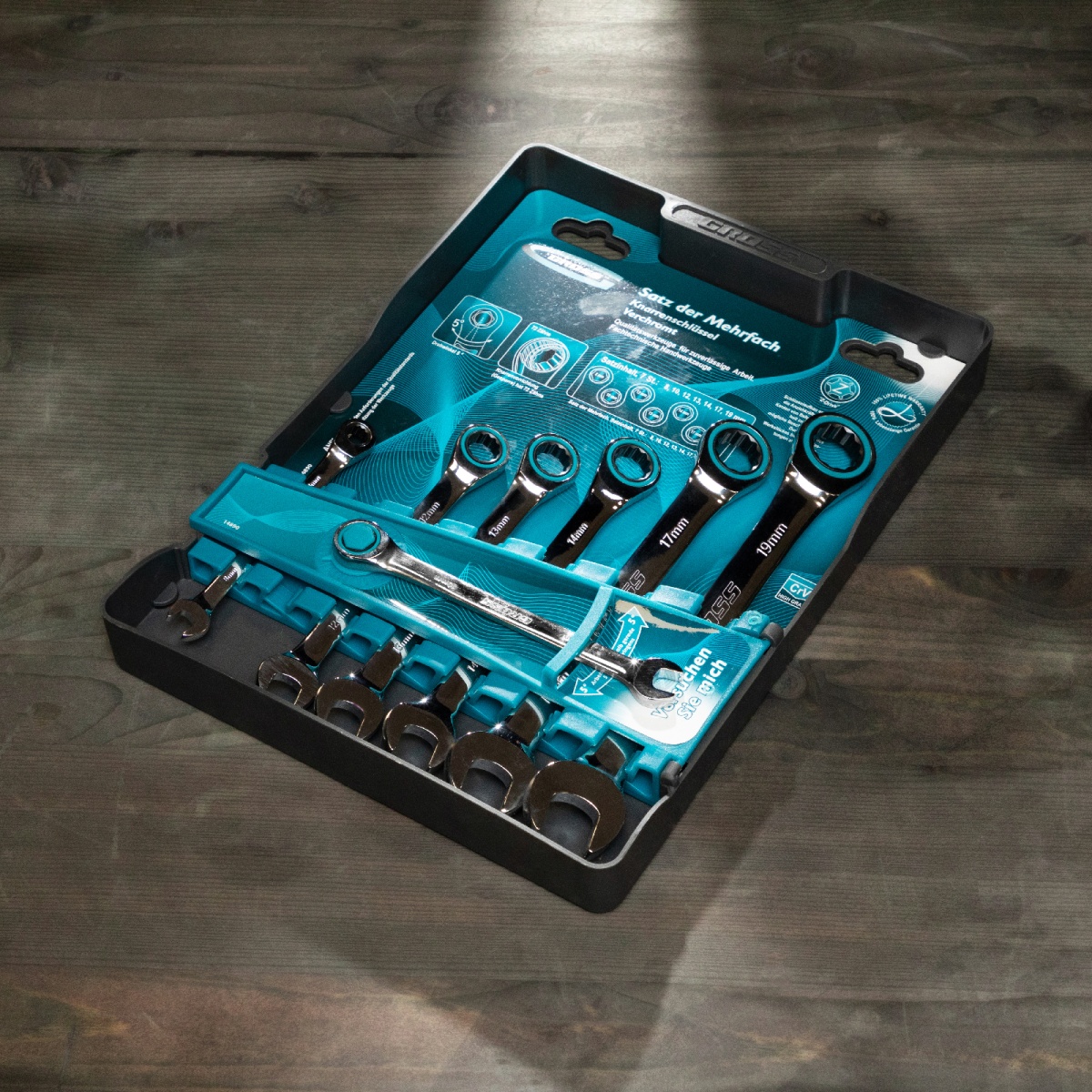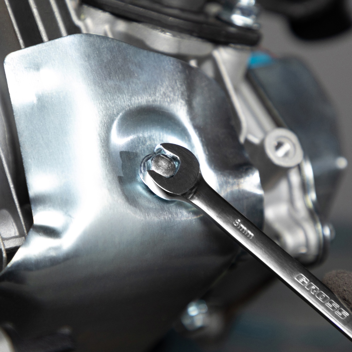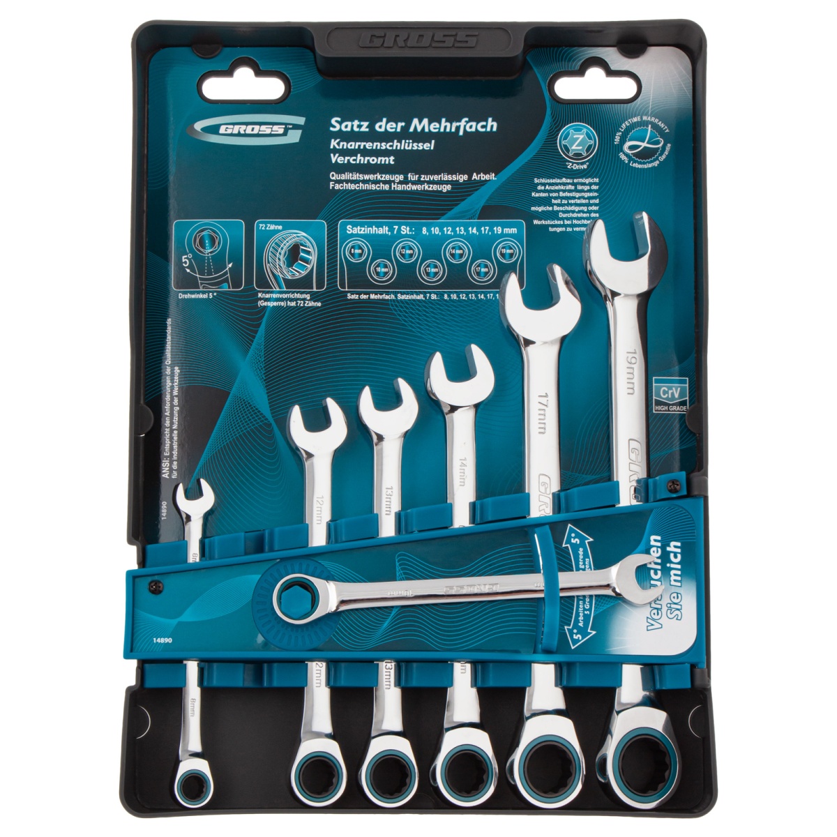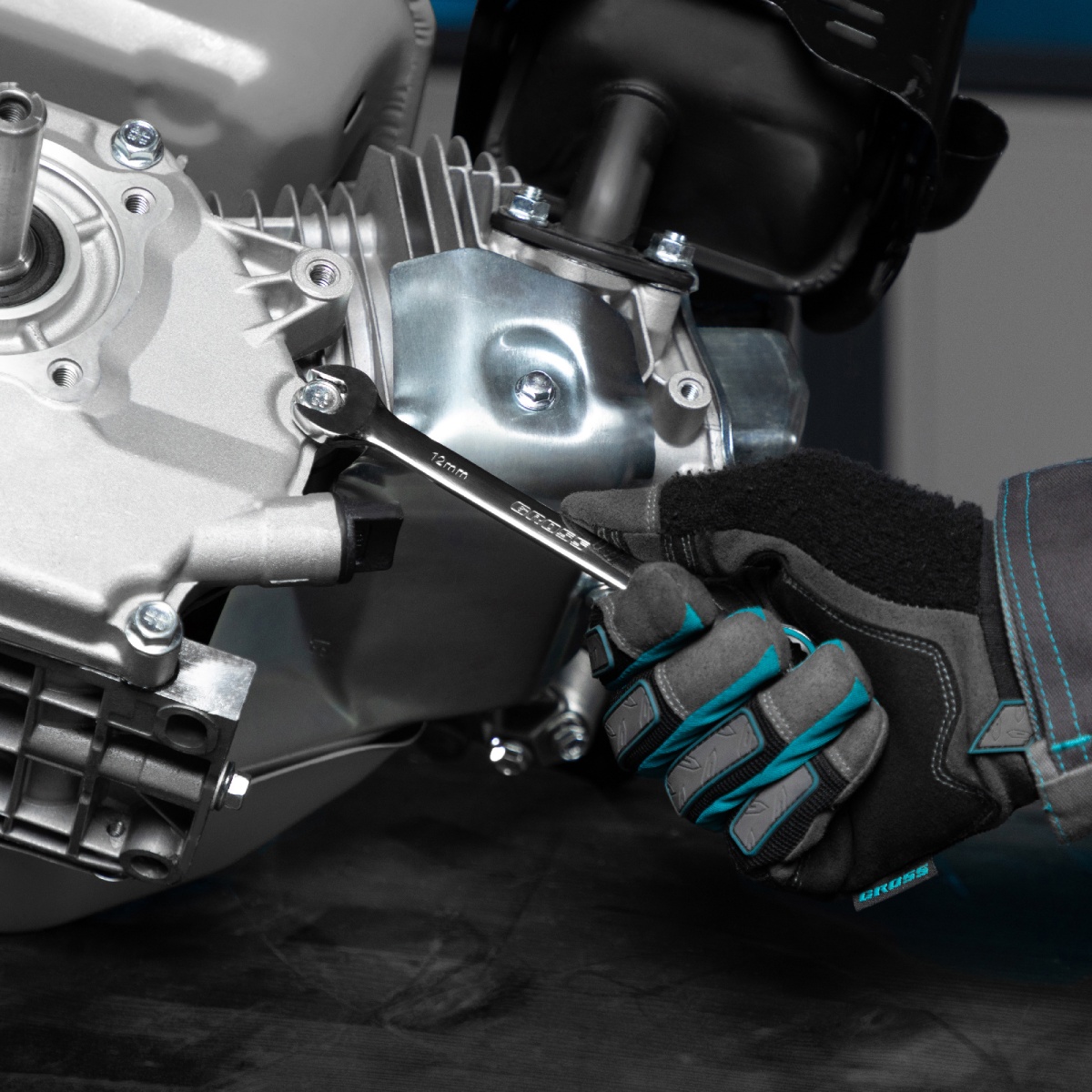 Каждый из ключей в наборе Gross 14890 имеет две рабочие головки — рожковую и накидную, что расширяет возможности применения. У накидной головки 12-гранный профиль, благодаря чему она надежно захватывает крепеж. Набор подходит как для профессионального, так и для самостоятельного ремонта автомобилей.