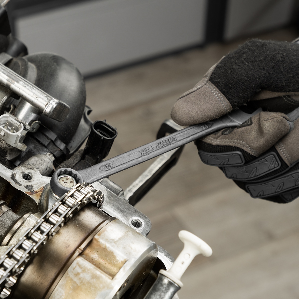 - Высокая прочность — инструменты изготовлены из хромованадиевой стали по технологии горячей ковки.Износостойкость — ключи прошли закалку и отпуск, твердость рабочих частей составляет 42-47 HRC.Защита от разрушения — поверхность инструментов фосфатирована для предотвращения образования коррозии.