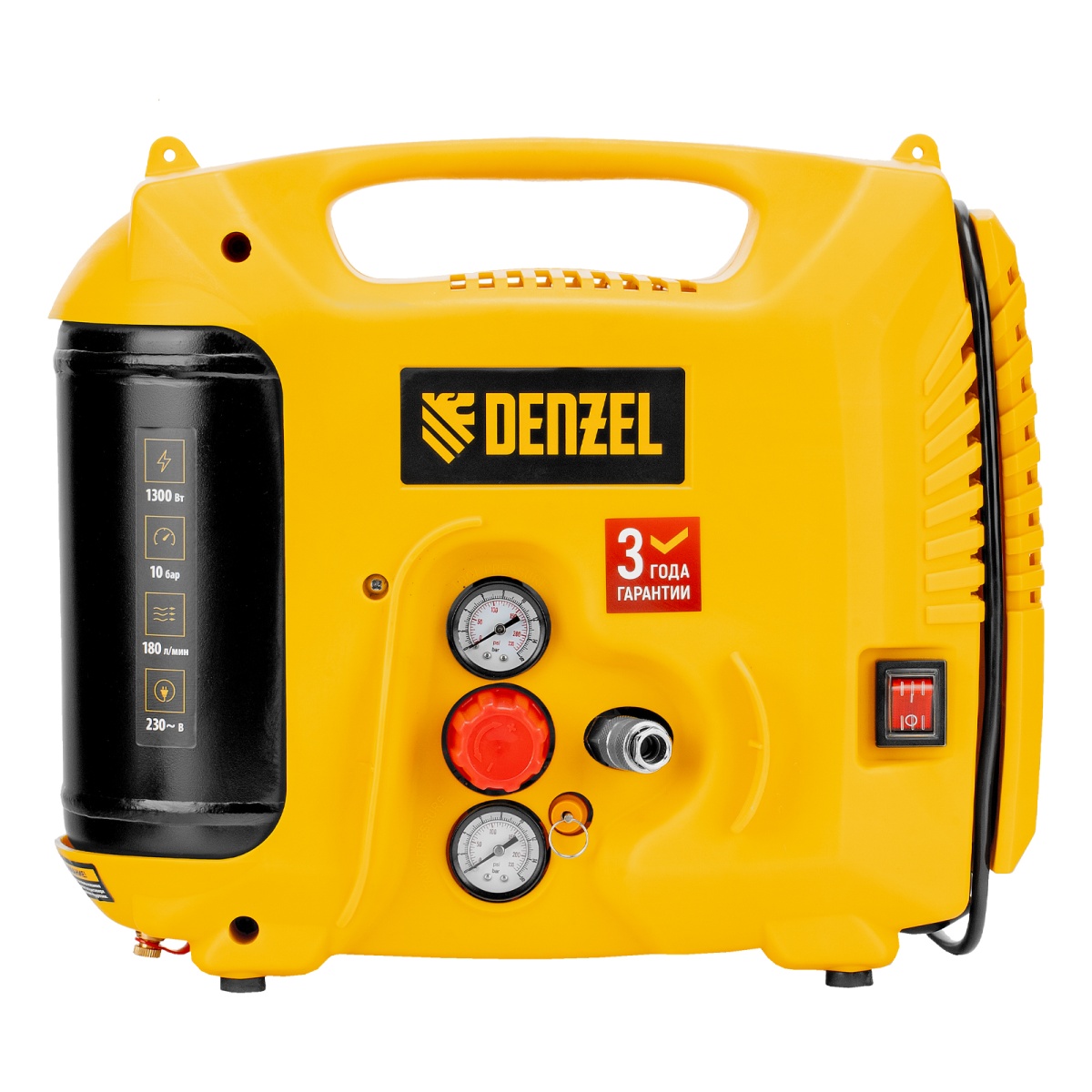 Компрессор воздушный Denzel DL1300 58011 мощностью 1,3 кВт, с максимальным рабочим давлением 10 бар, обеспечивает производительность 180 л/мин и поставляется с набором аксессуаров. Предназначен для обеспечения сжатым атмосферным воздухом нейлеров, степлеров, продувочных пистолетов, окрасочных и мовильных пистолетов и других пневмоинструментов, не требующих большого объема воздуха. Компрессор идеален для накачивания автомобильных шин, лодок, матрасов, мячей и прочих надувных изделий, а также для продувки труб водоснабжения.