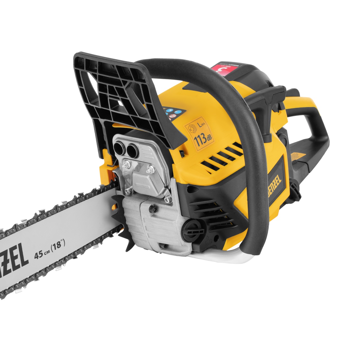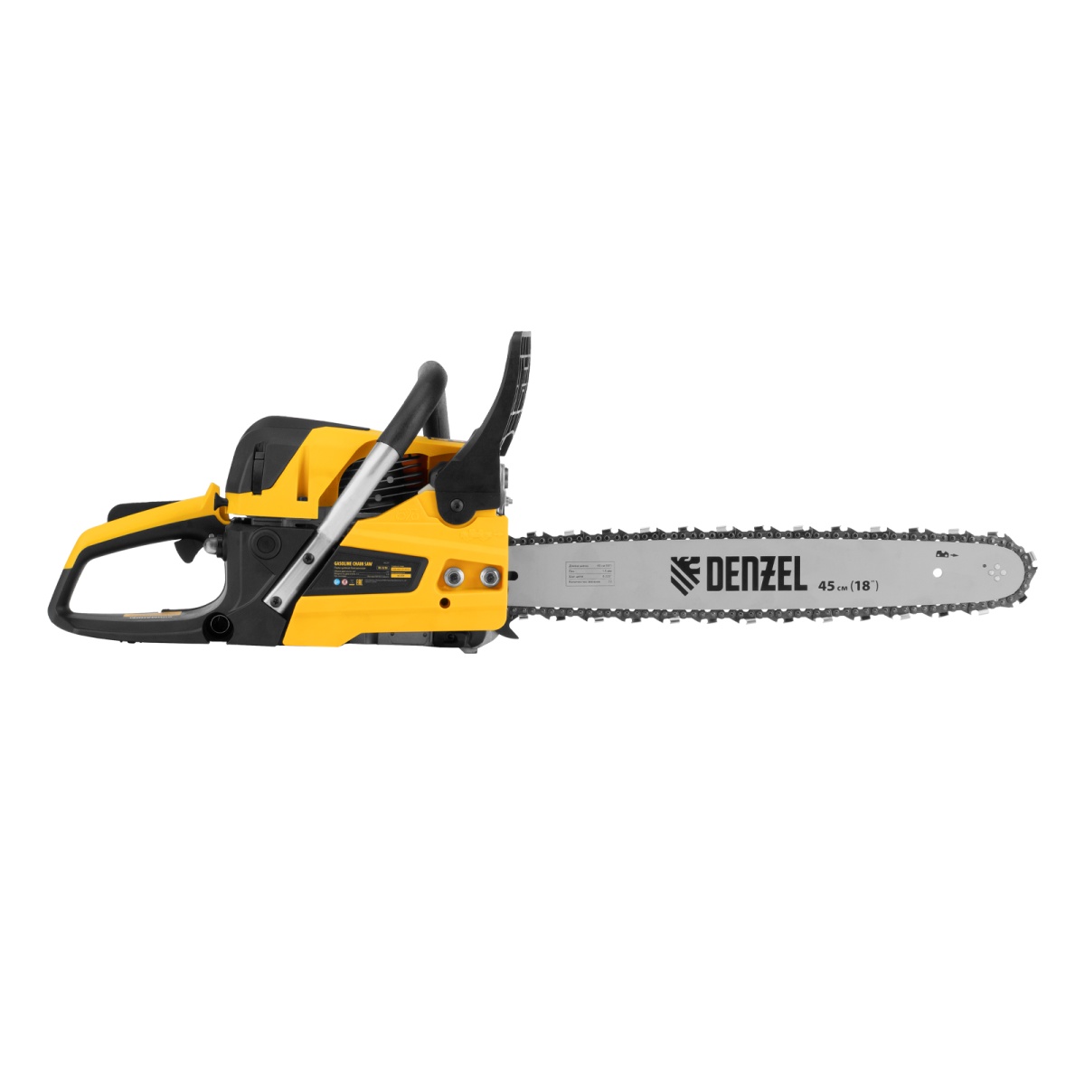 Пила цепная бензиновая Denzel DS-5218 95237 мощностью 3 л.с. оснащена двигателем объемом 52 см3 и поставляется с высокопроизводительной пильной гарнитурой: шиной длиной 45 см, цепью с 72 звеньями шагом 0,325" и пазом 1,5 мм. Используется для заготовки дров, распиловки древесины, при проведении ремонтных, строительных и садовых работ. Мощный и экономичный двухтактный двигатель позволяет эффективно и быстро решать поставленные задачи.