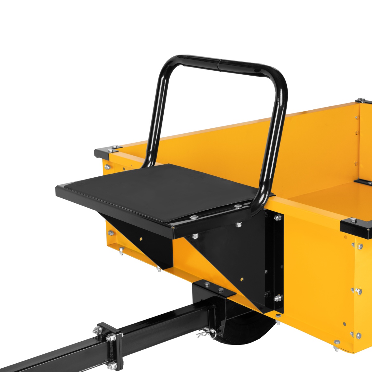 - Продуманная конструкция — пружинная подножка сцепки обеспечивает устойчивость прицепа, не соединенного с мотоблоком.