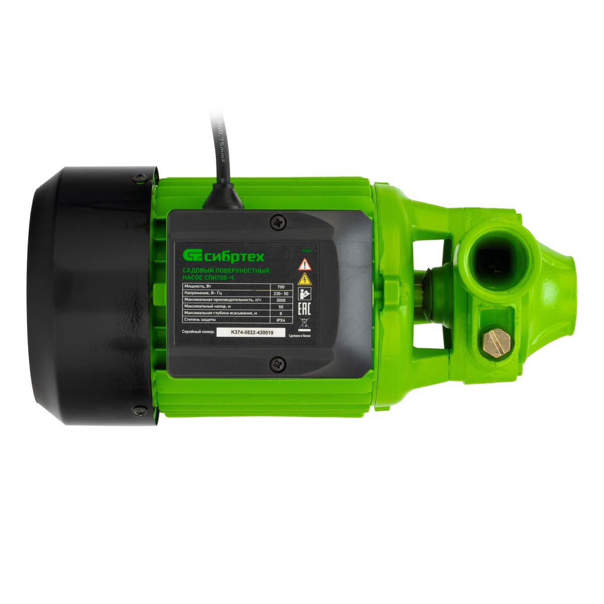 Садовый поверхностный насос Сибртех СПН700-Ч 97243 мощностью 700 Вт и производительностью 3000 л/ч, с корпусом насосной части из чугуна, способен перекачивать чистую воду с глубины до 8 м из резервуаров, открытых водоемов и колодцев, создавая напор до 50 м. Используется в частных домах для организации систем орошения и водоснабжения. Благодаря высоким показателям давления и скорости работы насос способен поддерживать несколько потребителей одновременно и доставлять воду даже на верхние этажи дома.ПреимуществаЧугунная насосная часть — конструкция отличается надежностью и низким уровнем шума во время работы.Улучшенное охлаждение двигателя — корпус из алюминиевого сплава имеет ребристую поверхность.Долговечность — благодаря прочной крыльчатке из латуни насос выдерживает активное использование.Эффективная работа — сухой ротор обеспечивает высокие показатели КПД при небольших затратах энергии.Отверстия в ножках — устройство можно закрепить на рабочей поверхности для устойчивости и снижения вибрации.Вес 7,55 кг — насос удобно перемещать по участку.