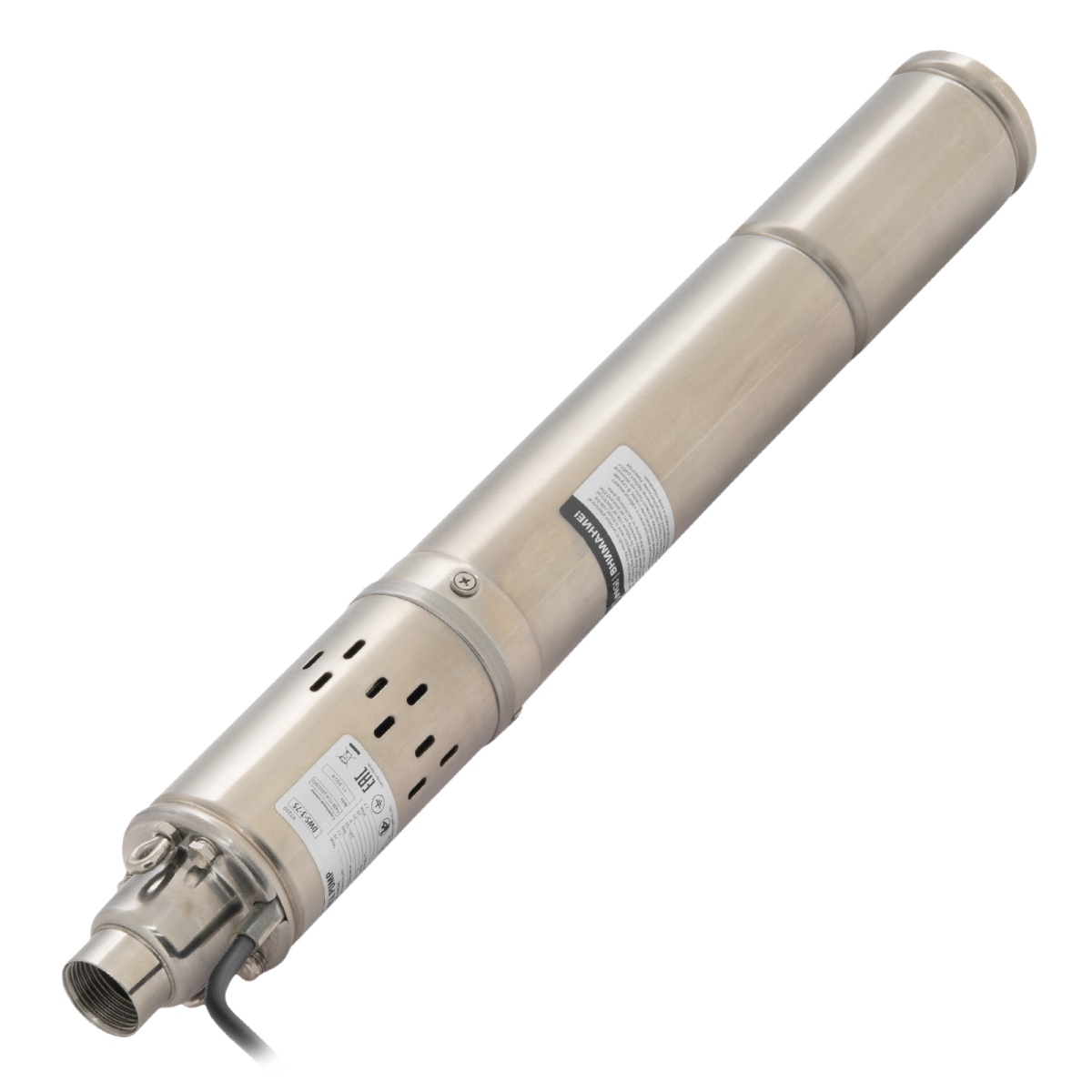 - Небольшие габариты и вес 7,7 кг — насос можно использовать в узких скважинах диаметром от 80 мм.