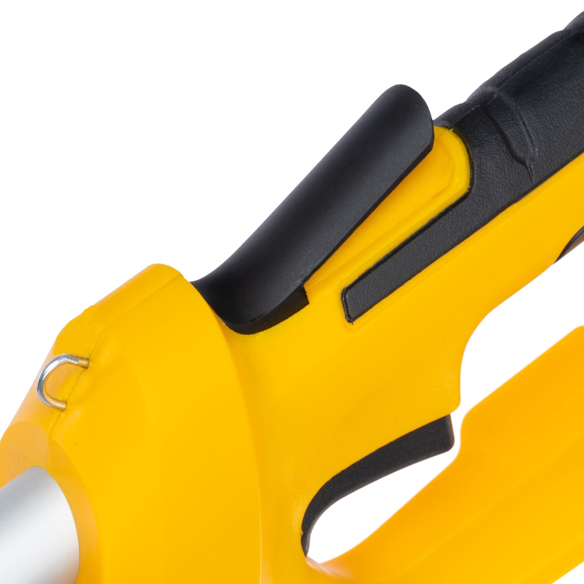 - Удобное управление — благодаря плечевому ремню, регулируемому кольцу крепления и D-образной ручке триммер легко удерживать и направлять.