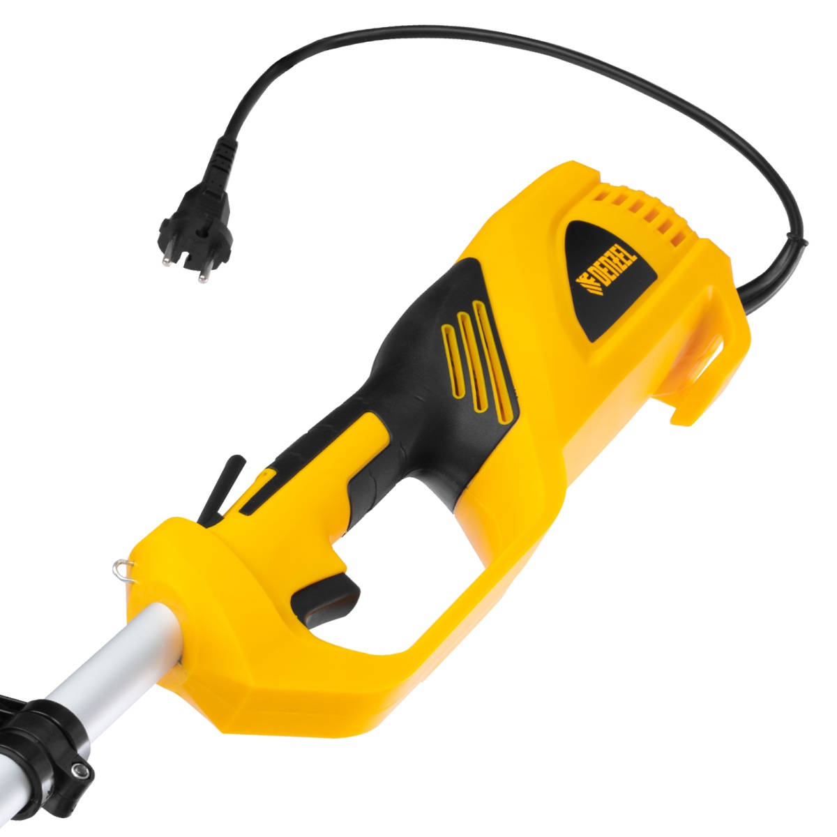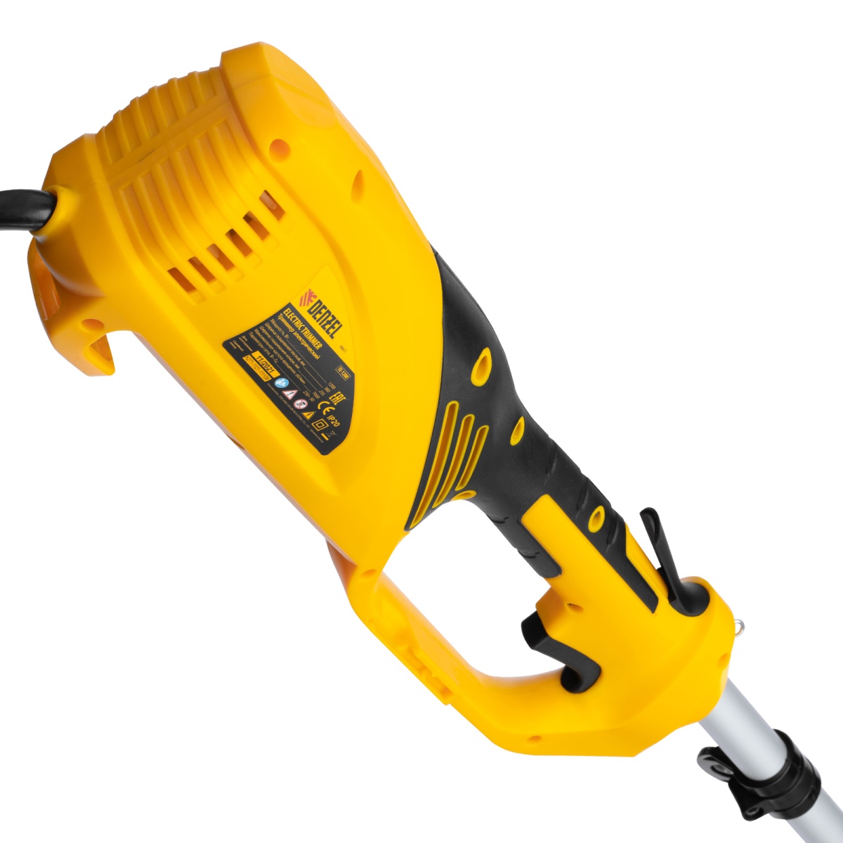 Триммер Denzel TE-1200 96611 мощностью 1200 Вт, с разборной штангой, комплектуется катушкой с леской и 3-лопастным диском, ширина скашивания составляет 380 мм и 255 мм соответственно. Идеален для скашивания травы различных типов, в том числе с жесткими стеблями (полыни, крапивы, лебеды). Благодаря верхнему расположению двигателя может косить мокрую траву. Двигатель мощностью 1200 Вт обеспечивает вращение оснастки с частотой 7000 об/мин. поэтому уход за участком не займет много времени. Электротриммер прост в обращении — ему не требуется сложное техническое обслуживание, пользоваться им сможет даже новичок.
