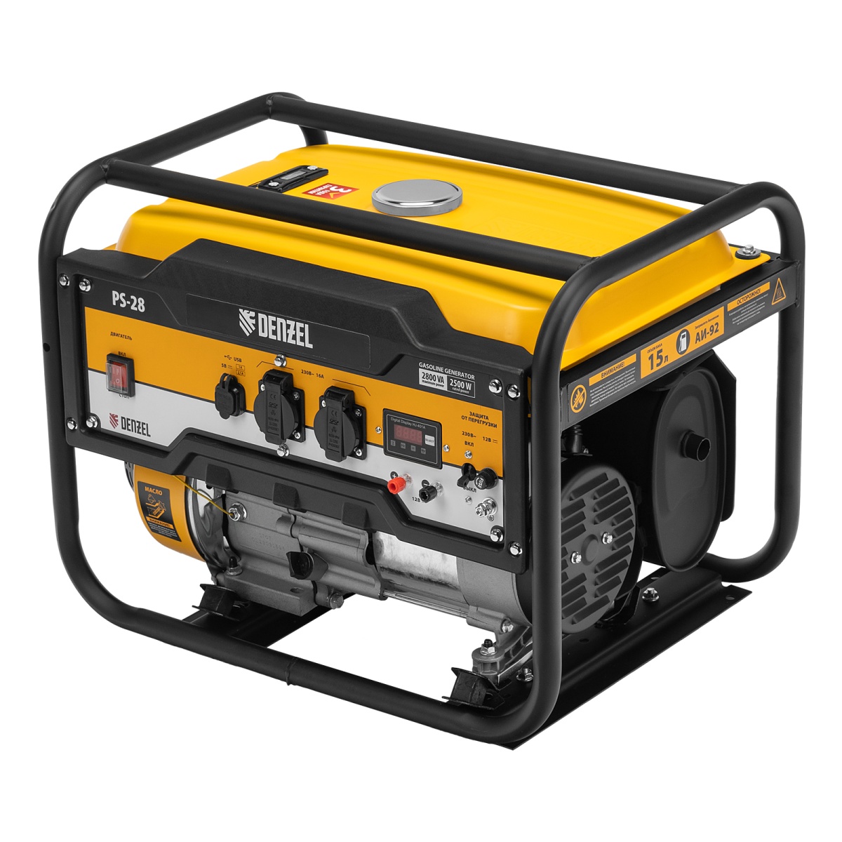 Бензиновый генератор Denzel PS 28 946824 мощностью 2,8 кВт с ручным стартером отлично подойдет для дачного участка, строительной площадки, домашней мастерской, кемпинга, рыбалки. Позволяет одновременно подключать несколько приборов, например, электрочайник, холодильник и 3 лампы дневного освещения. Благодаря увеличенному бензобаку на 15 л устройство будет работать более 12 часов без дозаправки. Экономичный и надежный четырехтактный двигатель мощностью 7 л.с. снижает выхлопы, расход топлива и уровень шума.