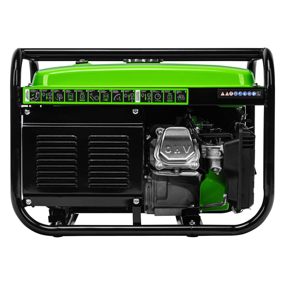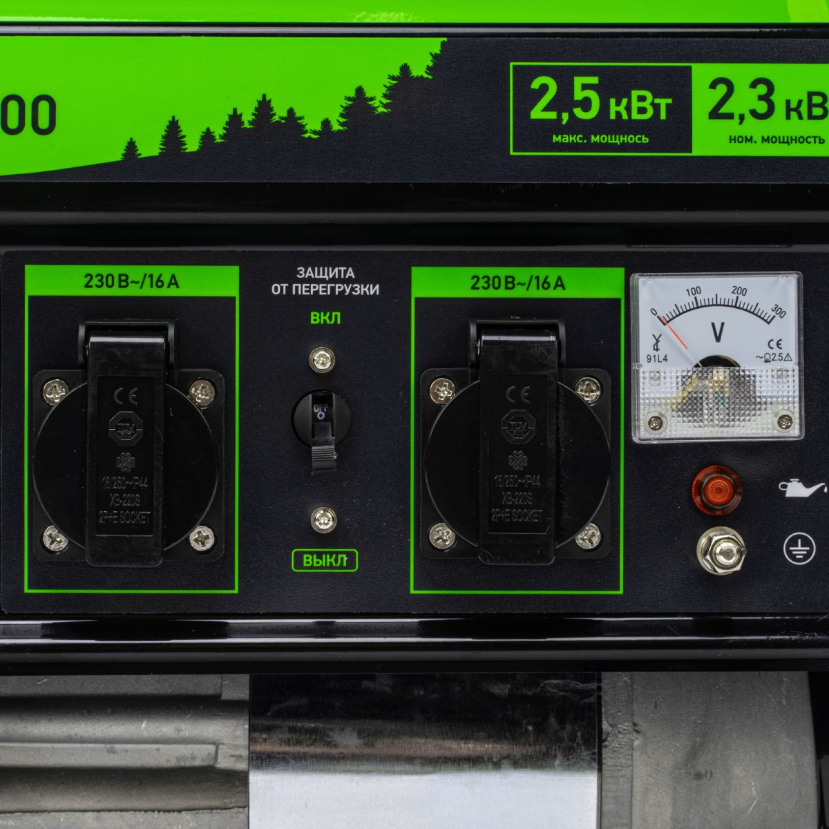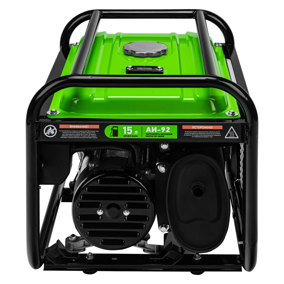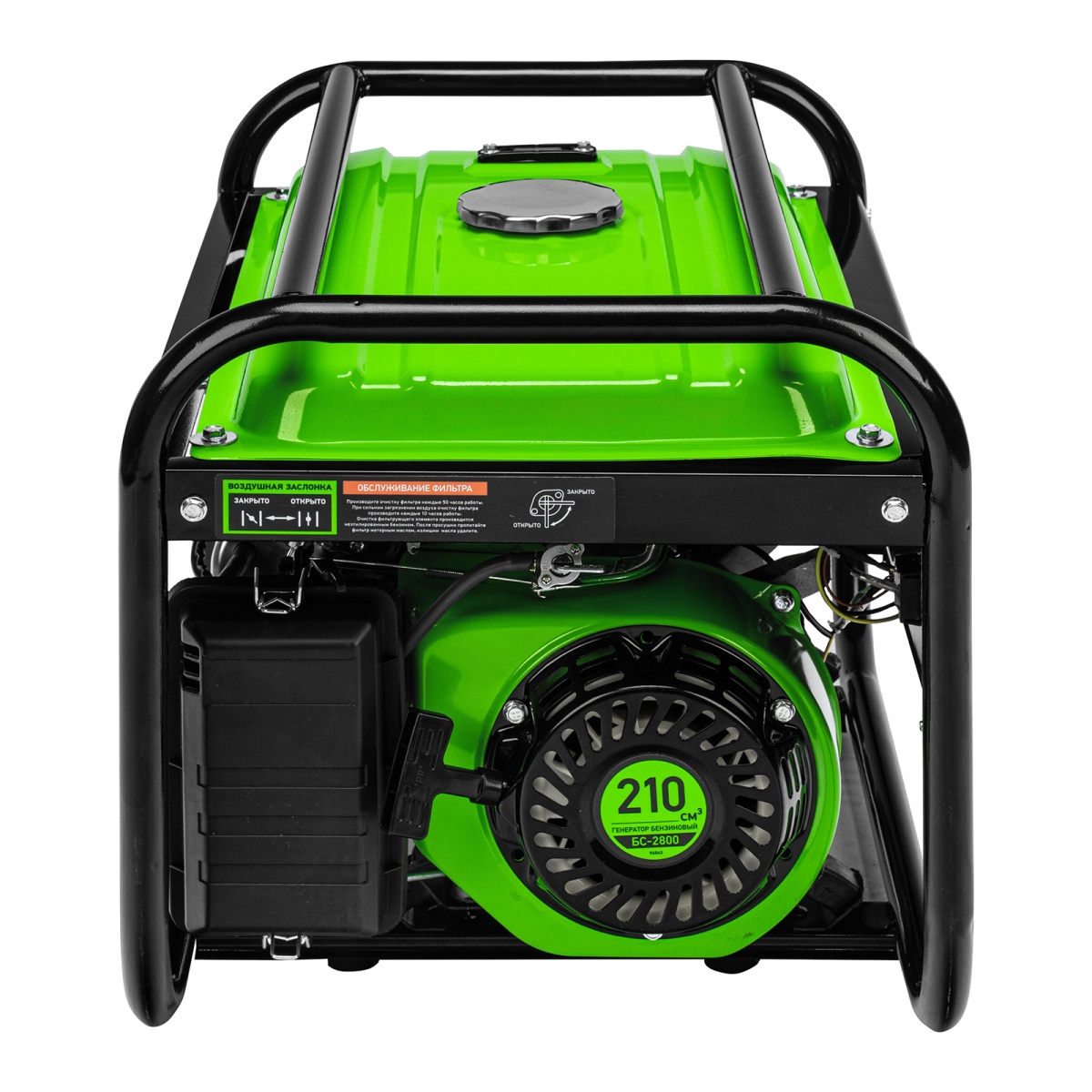 Бензиновый генератор Сибртех БС-2800 94543 на 230 В, максимальной мощностью 2,5 кВт, с 4-тактным двигателем и баком объемом 15 л, подходит для использования на даче, в гараже, мастерской или на стройке. Небольшой вес 37,6 кг позволяет брать генератор с собой на выездные работы или на природу. Мощности 2,5 кВт достаточно для одновременного питания 2 ламп накаливания, холодильника, СВЧ-печи и телевизора. 2 розетки упрощают одновременное подключение нескольких приборов.ПреимуществаРабота без скачков напряжения — благодаря блоку AVR к генератору можно подключать даже чувствительную технику.Простая эксплуатация — все элементы управления расположены на передней панели.Контроль рабочих параметров — встроенный вольтметр позволяет отслеживать напряжение в сети, а топливный индикатор — уровень бензина в баке.Защита поршневой группы — специальный датчик не допускает старт генератора с низким уровнем масла в картере.Низкий расход топлива — бака объемом 15 л хватает на 12 ч работы без дозаправки.Надежность — защита от перегрузки и короткого замыкания продлевает срок службы генератора.Стабильная работа двигателя — система воздушного охлаждения обеспечивает эффективный отвод тепла.Прочная конструкция — стальная рама надежно защищает генератор от повреждений.