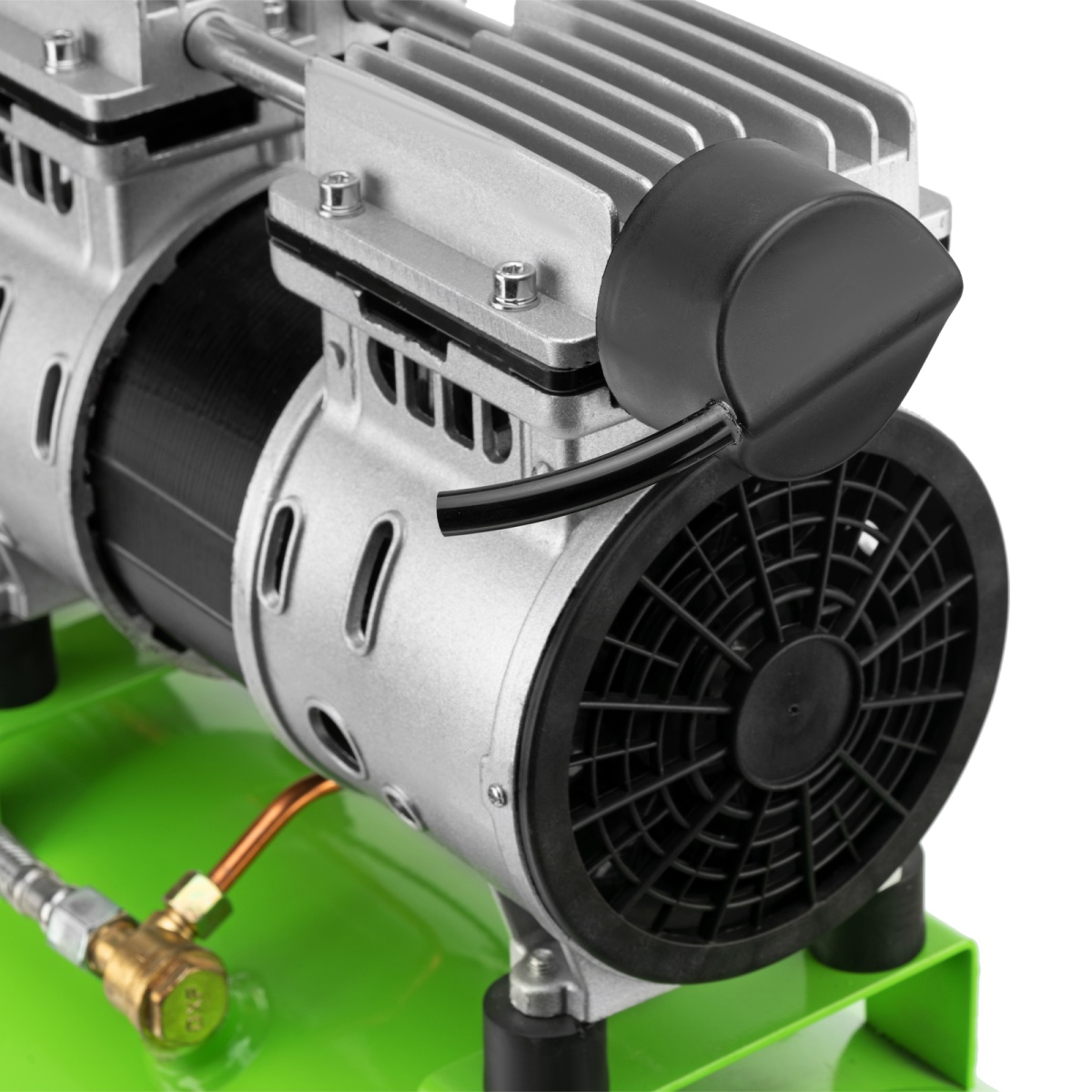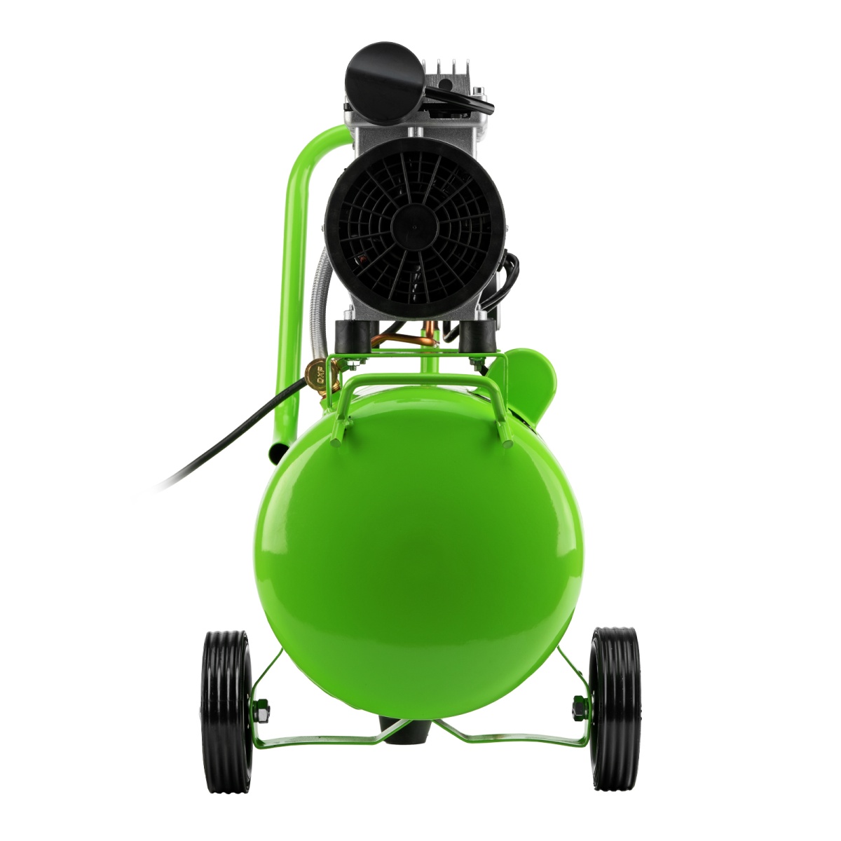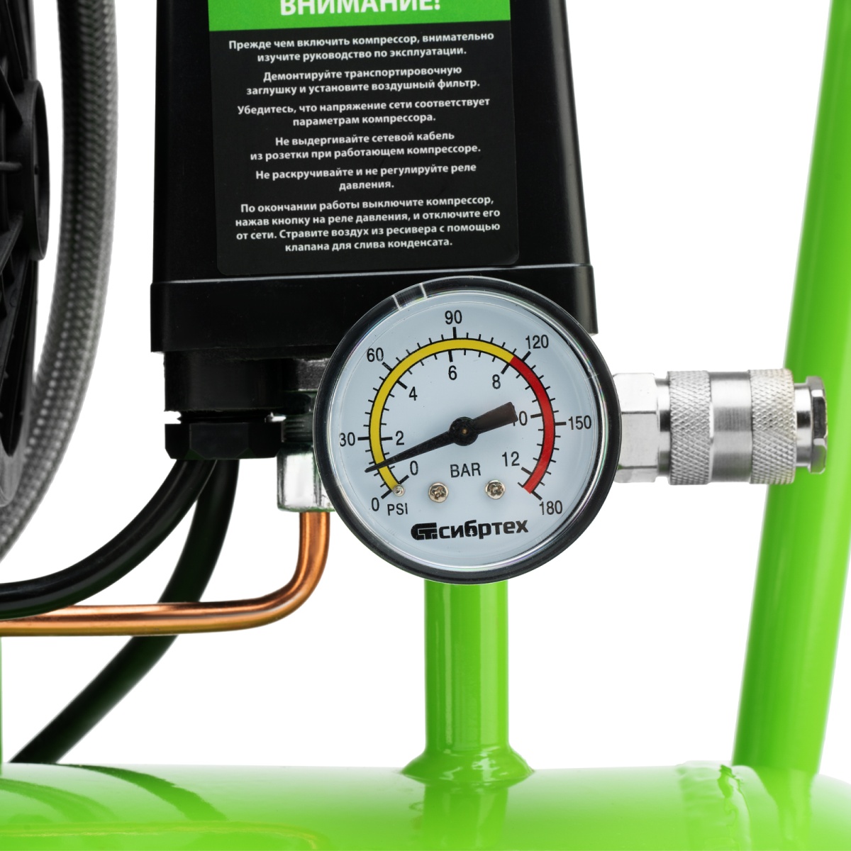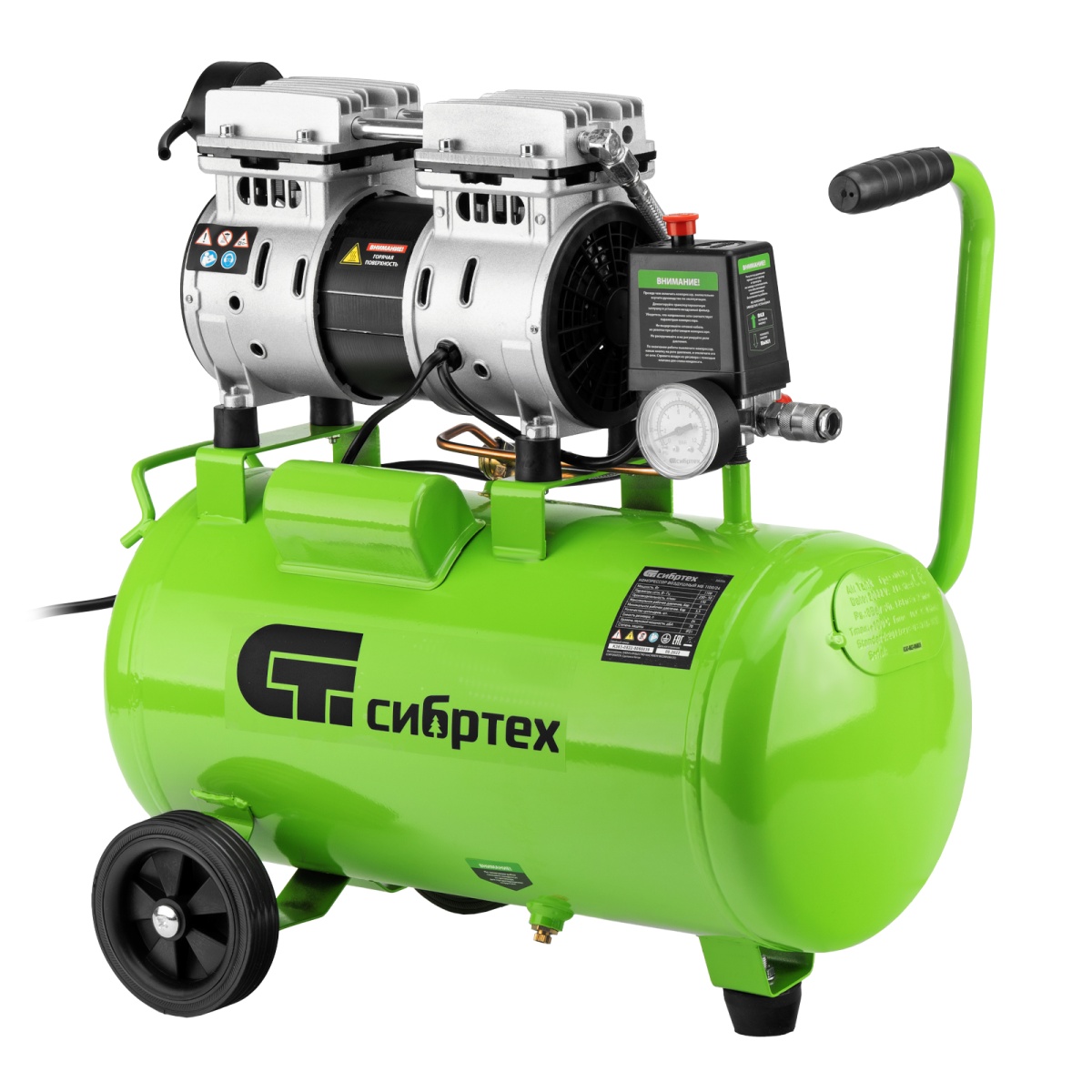 Безмасляный малошумный компрессор Сибртех МБ 1100/24 58006 мощностью 1100 Вт и объемом ресивера 24 л имеет производительность на входе 170 л/мин и сжимает воздух под давлением до 8 бар. Используется для обеспечения функционирования пневмоинструмента, например, краскораспылителя или пневматического шуруповерта. Для работы устройства не требуется масло, поэтому воздух на выходе не содержит его частиц. Компрессор оптимален для проведения покрасочных работ и продувки электронных компонентов.Одна из ключевых особенностей компрессора — низкий уровень шума (не превышает 70 дБ), позволяющий использовать устройство в жилом помещении без дискомфорта для людей.ПреимуществаТермозащита — при превышении допустимой температуры двигатель останавливается, что предотвращает его поломку.Простое подключение — выходной быстросъемный коннектор позволяет подсоединить пневмоинструмент одним движением.Контроль рабочих параметров — компрессор оборудован механическим манометром для отслеживания давления.Безопасная работа — предохранительный клапан защищает от превышения максимально допустимого давления.Автономная работа — реле давления останавливает двигатель по достижении максимального рабочего давления и запускает его, если давление опускается до минимального.Продуманная конструкция — виброопора обеспечивает устойчивость компрессора и гасит колебания, возникающие во время работы.Комфортная транспортировка — производителем предусмотрена ручка и 2 колеса для перемещения.