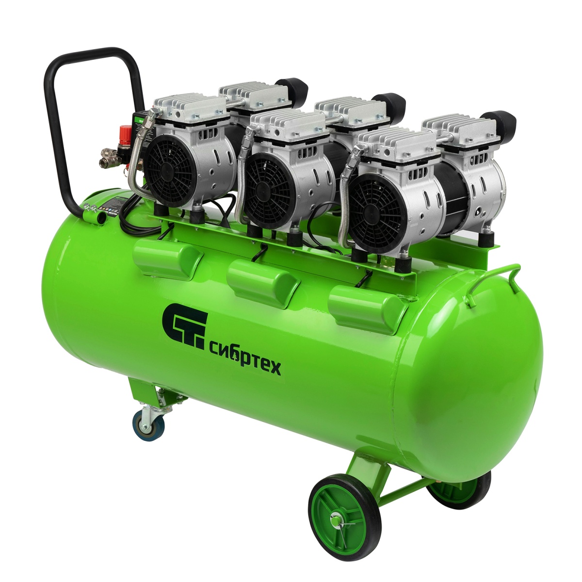 Безмасляный малошумный компрессор Сибртех МБ 2250/100 58008 мощностью 2250 Вт и объемом ресивера 100 л имеет производительность на входе 400 л/мин и сжимает воздух под давлением до 8 бар. Используется для обеспечения функционирования пневмоинструмента, например, краскораспылителя, перфоратора или пневматического шуруповерта. Для работы устройства не требуется масло, поэтому воздух на выходе не содержит его частиц. Компрессор оптимален для проведения покрасочных работ и продувки электронных компонентов.Одна из ключевых особенностей компрессора — низкий уровень шума (не превышает 70 дБ), позволяющий использовать устройство в жилом помещении без дискомфорта для людей.ПреимуществаТермозащита — при превышении допустимой температуры двигатель останавливается, что предотвращает его поломку.Простое подключение — выходной быстросъемный коннектор позволяет подсоединить пневмоинструмент одним движением.Контроль рабочих параметров — компрессор оборудован механическим манометром для отслеживания давления.Безопасная работа — предохранительный клапан защищает от превышения максимально допустимого давления.Автономная работа — реле давления останавливает двигатель по достижении максимального рабочего давления и запускает его, если давление опускается до минимального.Легкий разворот и комфортная транспортировка — производителем предусмотрена ручка, а также 2 больших колеса и 1 поворотное.